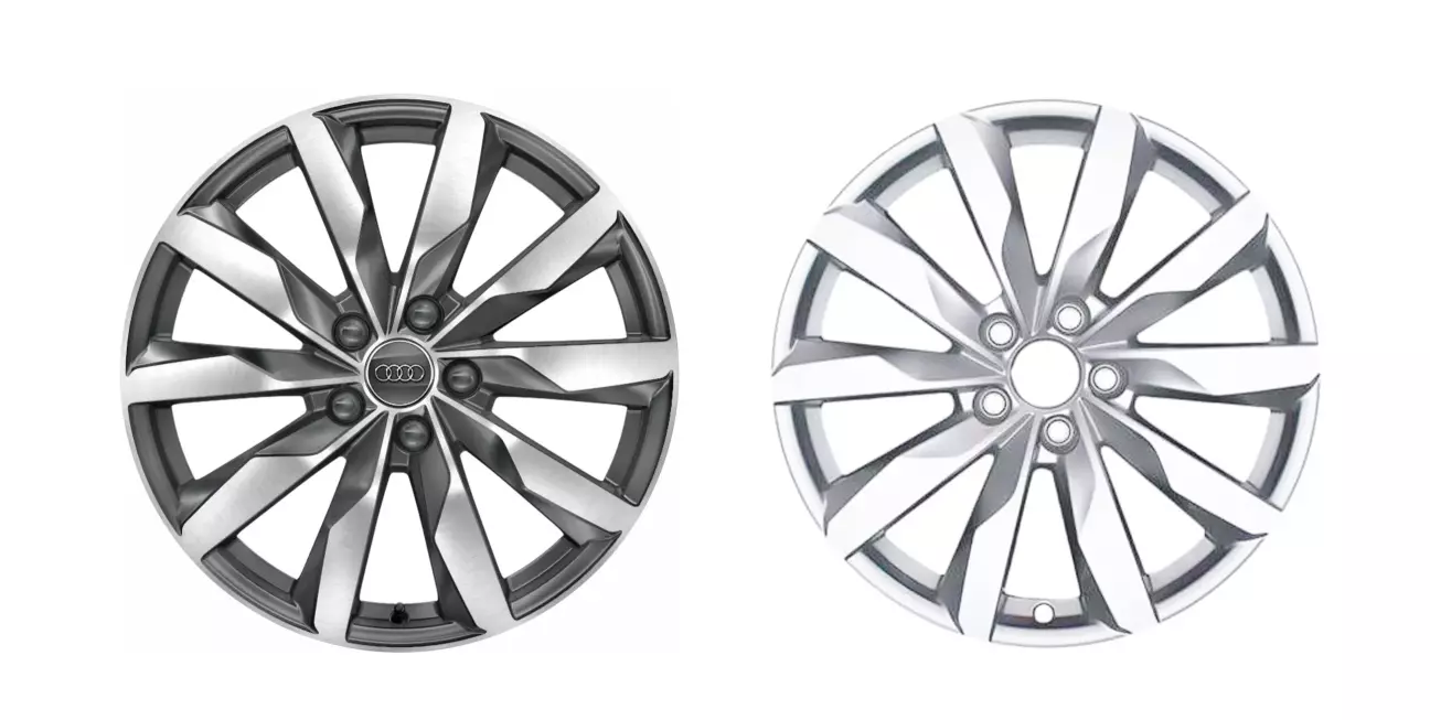 Моніторив ОЛХ і натрапив на диски від A4/S4 B9 8W0601025FJ (наскільки зрозумів, по каталогу AUDI USA то ставились на 2019-2024), згадав, що неодноразово звертав на них увагу на дорозі, беру картинку, приміряю в фотошопі, відправляю друзям на затвердження, всі кажуть що може вийти непогано. Перевіряю, 8J, ET40 - мій завод. Цих дисків, існує 2 варіанти, такі як у мене, графітова основа + алмазна проточка, і повністю пофарбовані в сріблястий. І наскільки ж велика різниця. Такий сетап на CC я ще не зустрічав, та і на A4B9, частіше варіант з повністю фарбованими, без проточки. Домовляюсь з продавцем.
