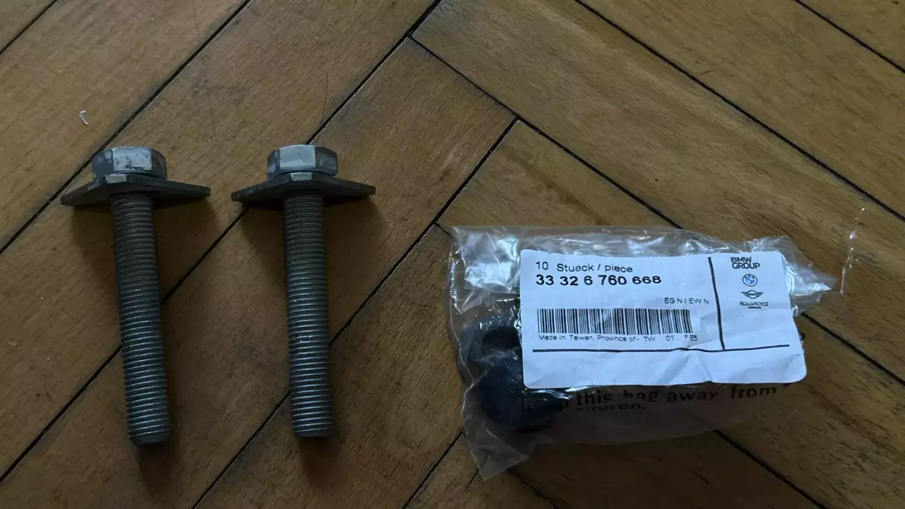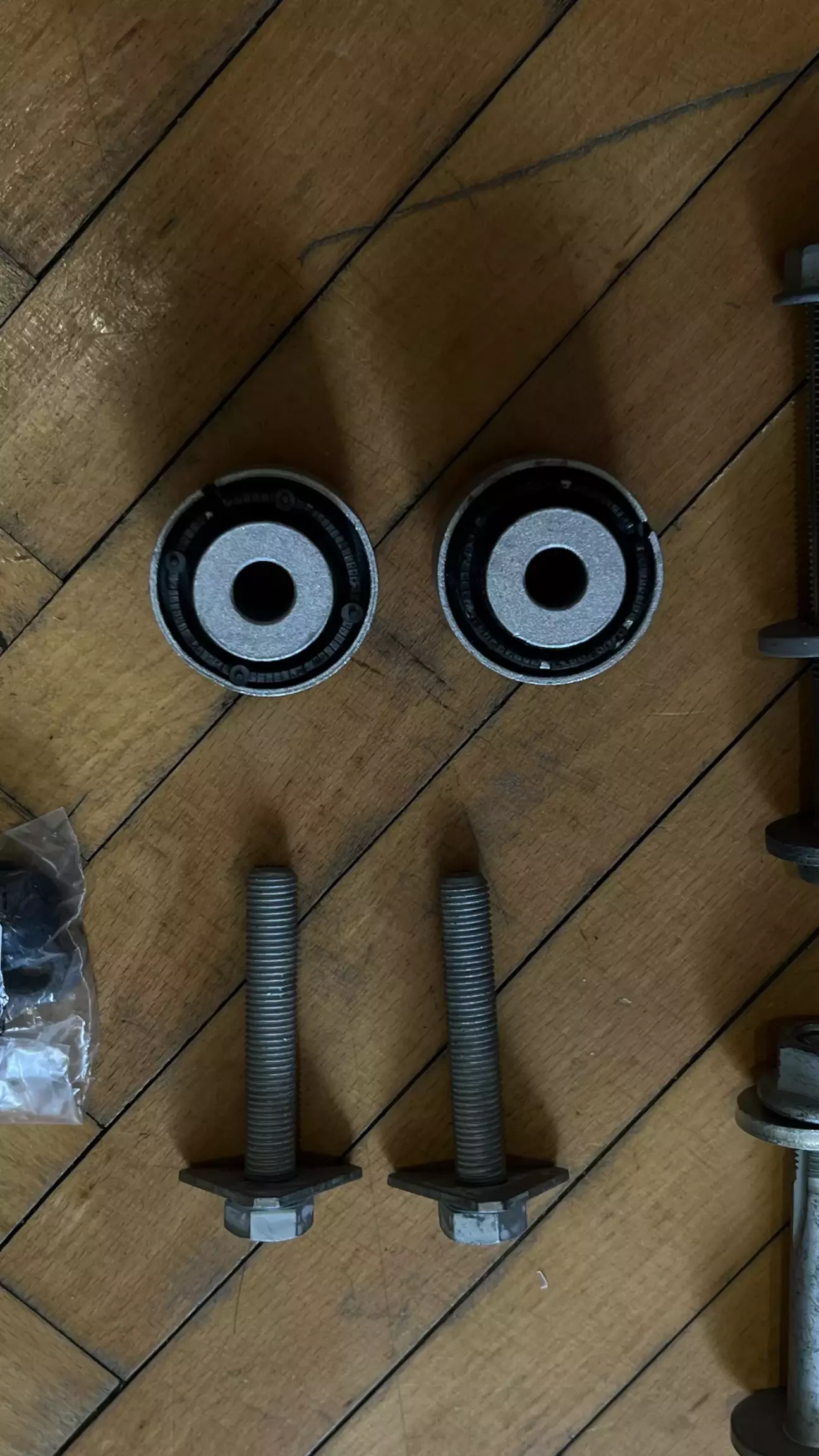 На сервісі сказали що по відчуттям ці болти останній раз крутились років 6-8 назад( ще у Швейцарії). Болти провертались в сайленблоках. Тому вирішено пиляти болти і ставити нові. Через знайомого куплений оригінальний ричаг з пробігом 11 к км з японського авто, також нові оригінальні сайленблоки на іншу сторону в оригінальний ричаг, нові розвальні болти та сходження, гайки, болти кріплення ричага до цапфи.