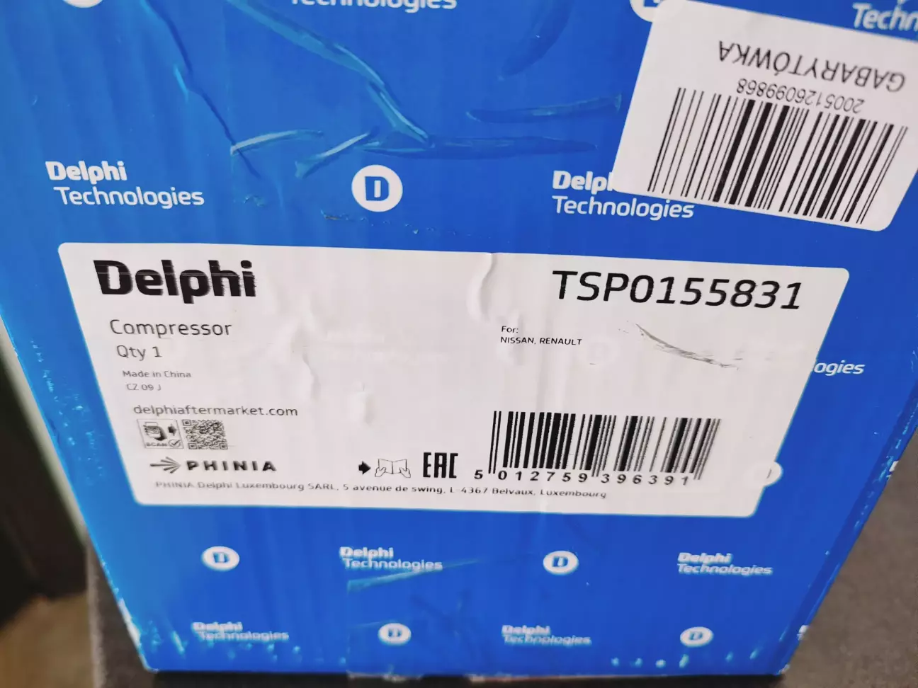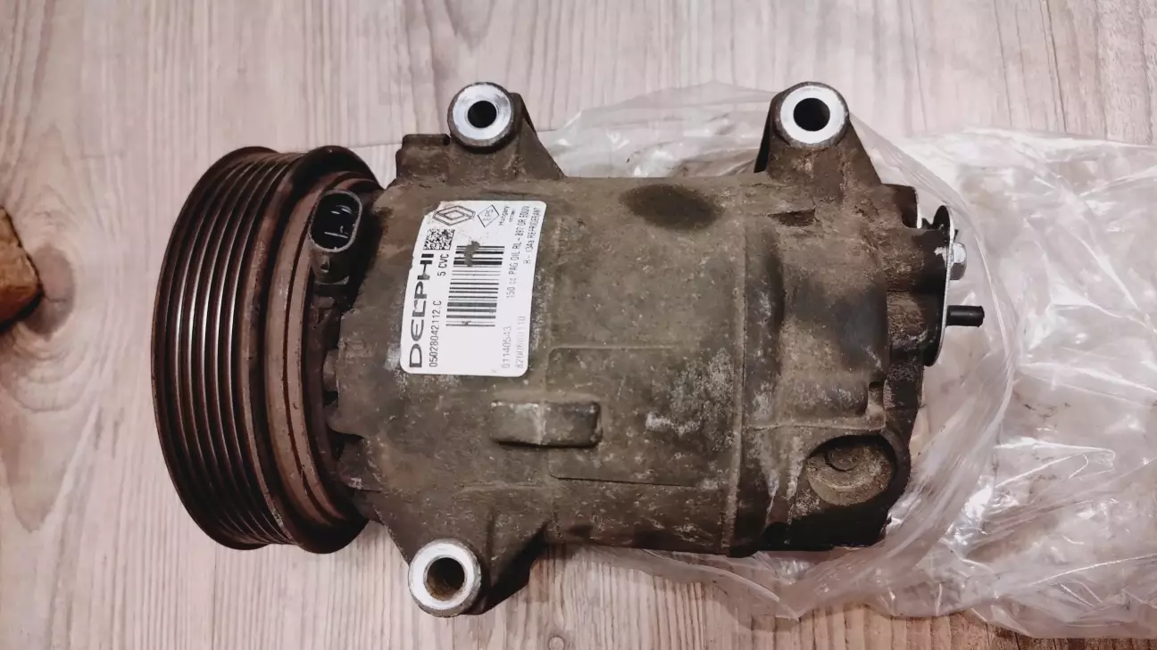То я вирішив купити аналог, але такого ж самого виробника, як і рідний компресор - Delphi. Купив компресор на сайті planetauto.com.ua з очікуванням в 1 день: в п'ятницю замовив, а у неділю вже отримав з Нової пошти. Вартість 9597 грн, номер запчастини Delphi TSP0155831, в комплекті є 2 гумових кільця для трубок. На вигляд практично 1-в-1 як рідний компресор за винятком самої муфти ввімкнення - вона інша на вигляд і довший провід роз'єма, ну і відсутність надпису Renault на наліпці.
