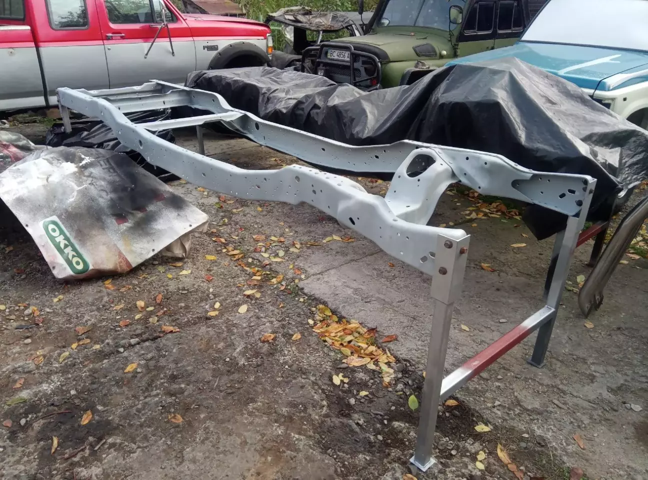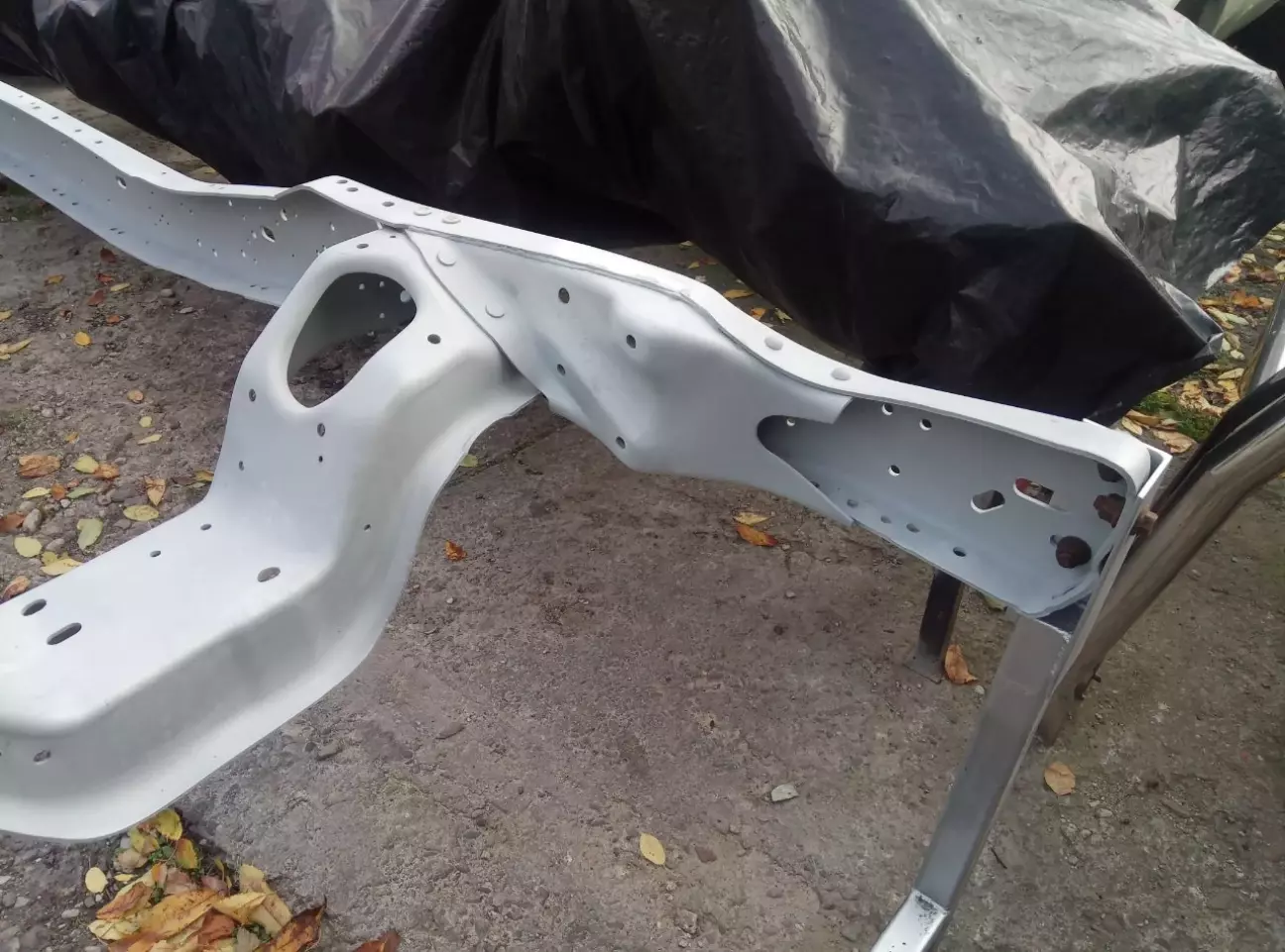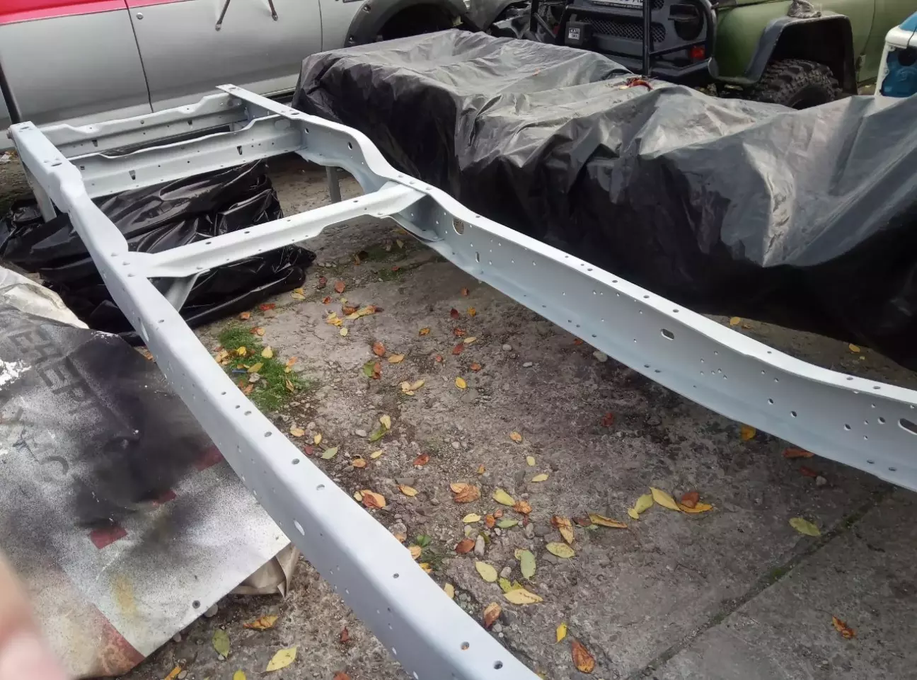 Орієнтовно два тижні тому забрали раму з очистки піском та нанесення цинку. Погодні умови вже не дозволять пофарбувати раму Хамерайтом через довготривалий висихання останнього, тому запаковують в поліетилен і залишаю до весни, тим часом деталі рами будуть пофарбовані в гаражі та підсипати.