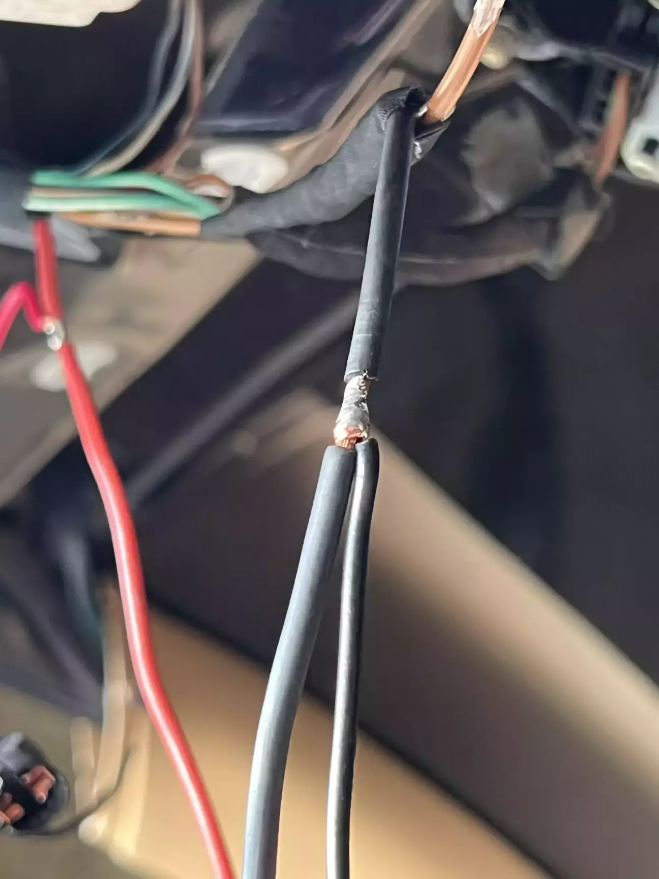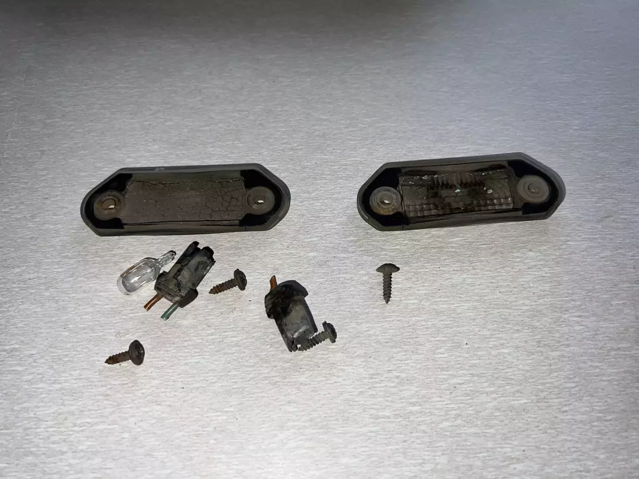 Давненько вже катаюсь без підсвітки, коли знайшовся вільний час, заздалегідь купив пару лампочок, вирішив все ж таки залізти туди. Але з першого разу не вийшло. Виявилось що плафони зовсім вигнили та більше непридатні. Замовив пару плафонів і через пару днів знову розбираю. Розібравши все, картина мене не дуже порадувала, плафони то фігня, провода + та - я відразу відрубав під самий корінь, тому що наприклад коричневий - почорнів всередині аж до самої контактної зварки, і його вже ніяк не врятувати, тому я взяв свіжі провода, скрутив, спаяв і все замотав в клейову термоусадку.