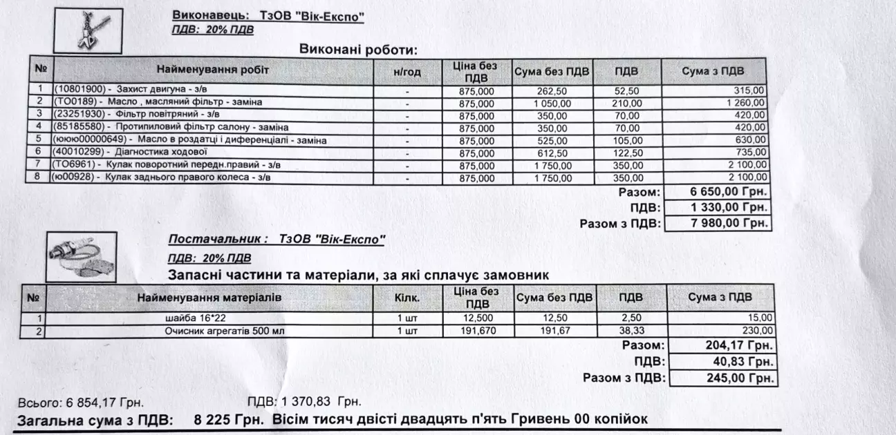 А передні пошкодження не були задокументовані, але праве переднє колесо налетіло на якусь перешкоду так, що аж шмат диска відломився. І на первинному ремонті замінили правий важіль та праву тягу.