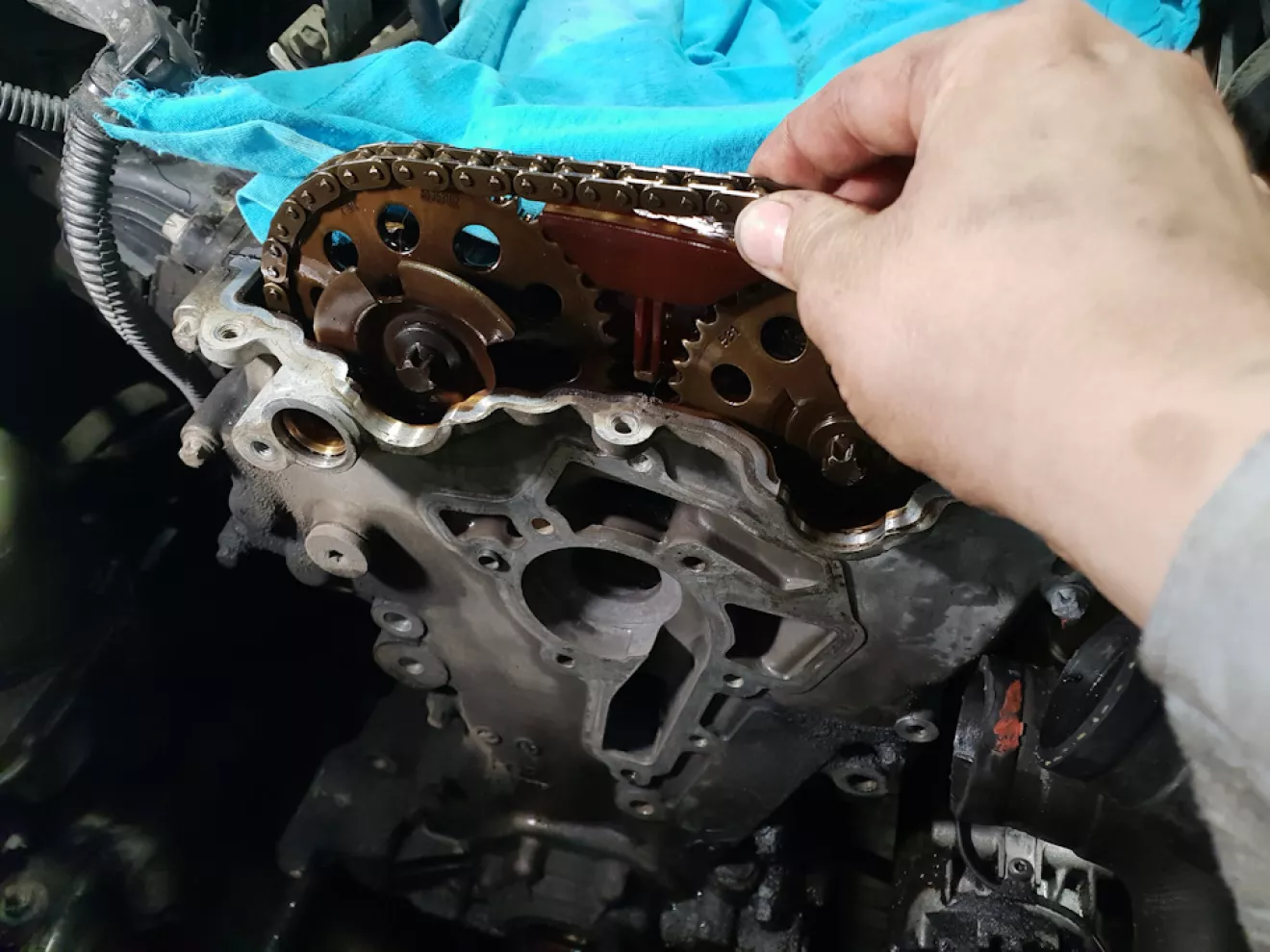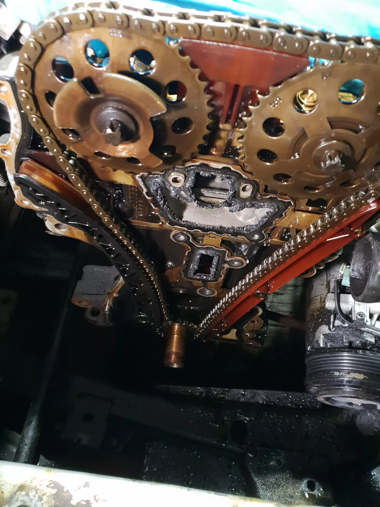 Все таки пришло время менять цепь пробег уже 320000 тыщ, а вообще прокладка боковая так сифонила что масло уходило капец как.Комплект взял INA прокладки все оригинал.Менял сам, все заблокировал снял поставил новую цепь разница в цепях была на одно звено.Щас вроде по езде норм.;)