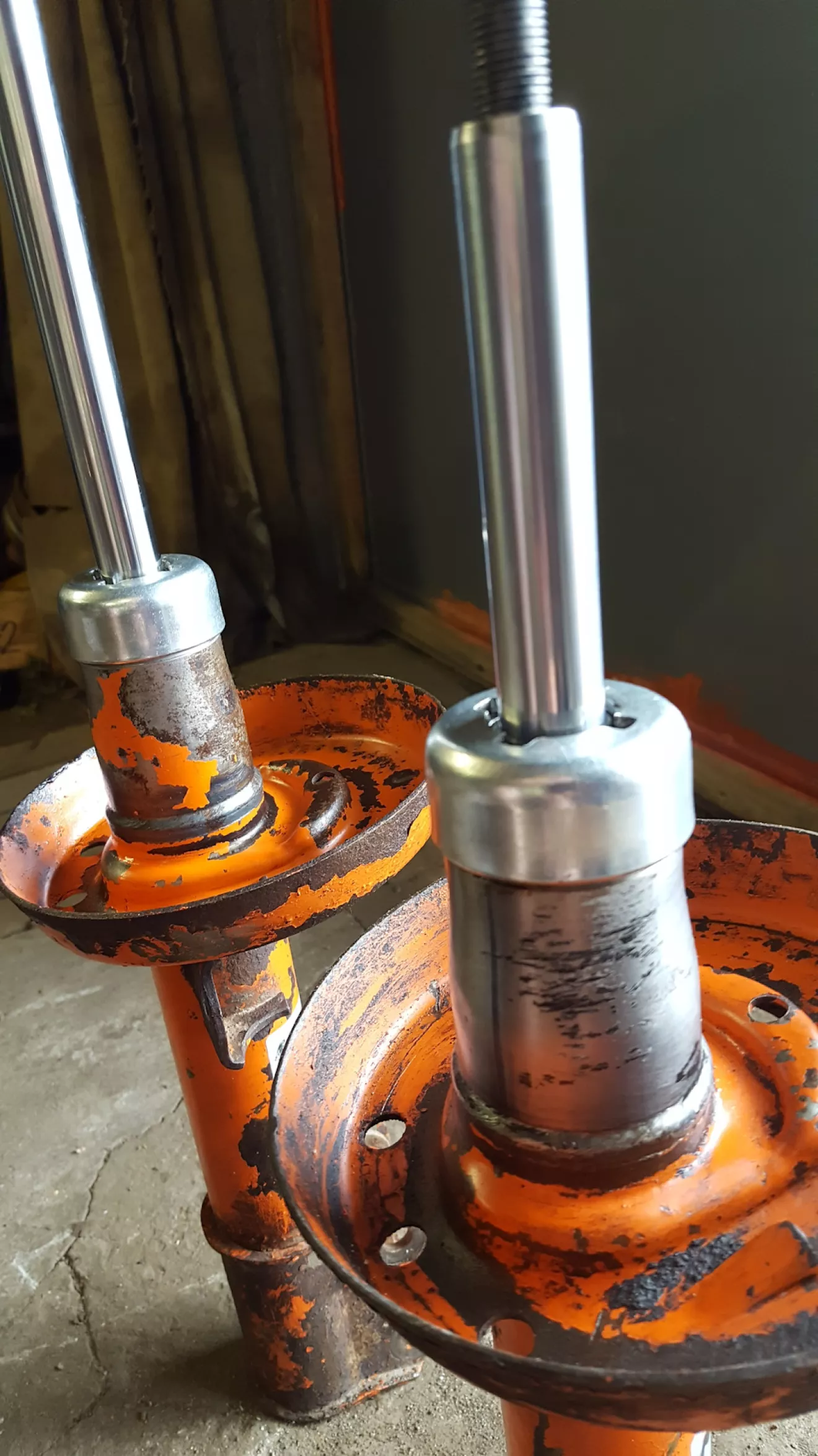 На днях пришли мои стойки передние, делал парень с запорожья, за что ему огромное спасибо.Стойки переделал залил новое масло новый сальник .Сегодня установил стойки плюс новые опоры и резинки.Да действительно результат положительный, стала жоще но это то что я хотел .