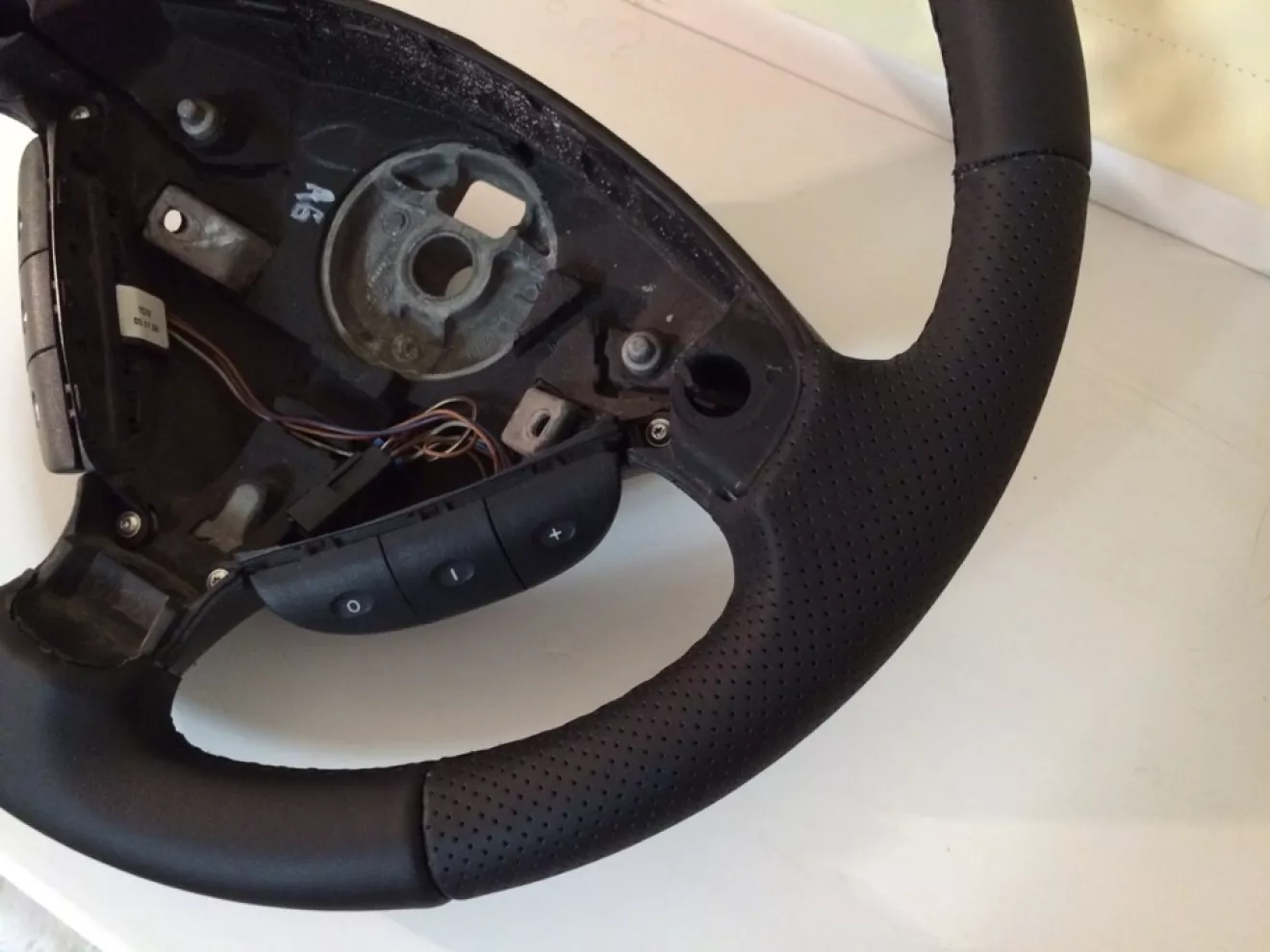 На днях был отдан мой руль на перетяжку т.к на моем были уже дырки :))) Ну перетянули хорошо делала женщина … Фото ниже … Но ощупь приятно …