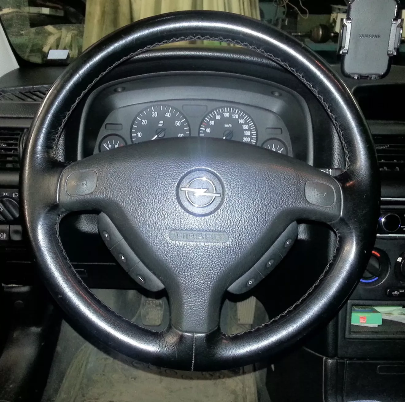 Вот попался мне на просторах инета руль кожаный и в хорошем состоянии, с кнопками, которые правда мне ни к чему но без них остаются дырки :( … Установил норм фото ниже.