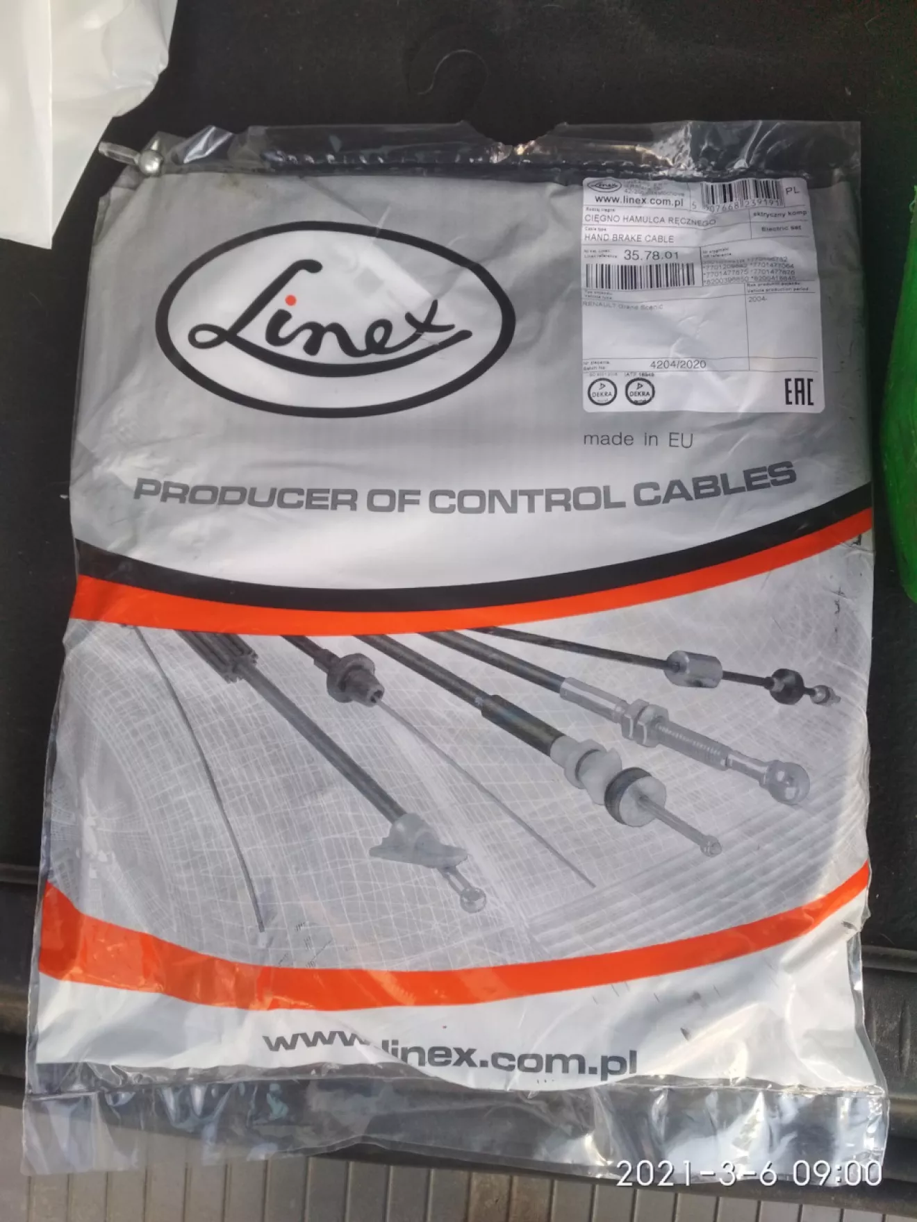 Все операции по снятию троса проводил без ямы и без снятия/разборки блока. Да не удобно, да ограниченное пространство, но тонкой отвёрткой вполне реально подцепить усик на пластиковом фиксаторе. Как временная мера трос был промыт ВД-40, и из шприца промазан моторным маслом, да долго, да муторно, но реально! Для меньшего попадания влаги кожух был обмотан изолентой. И поставлен на зад. Также пиреном была отключена автопостановка. И вот в конце зимы (ну все как всегда :)) были куплены новые тросы ручника. Долго колебался с выбором: трискан или Линекс, но остановился на более дорогом Линекс.