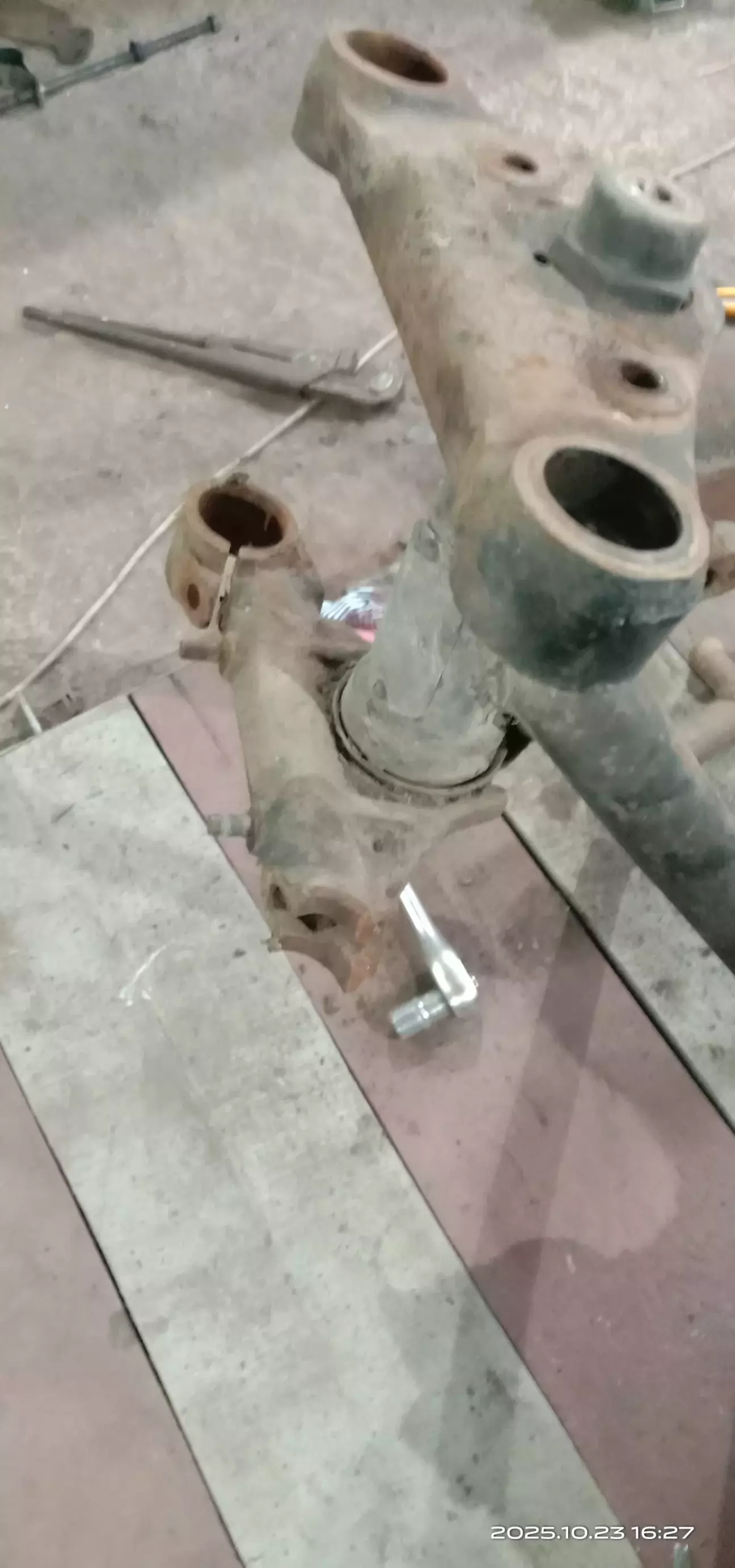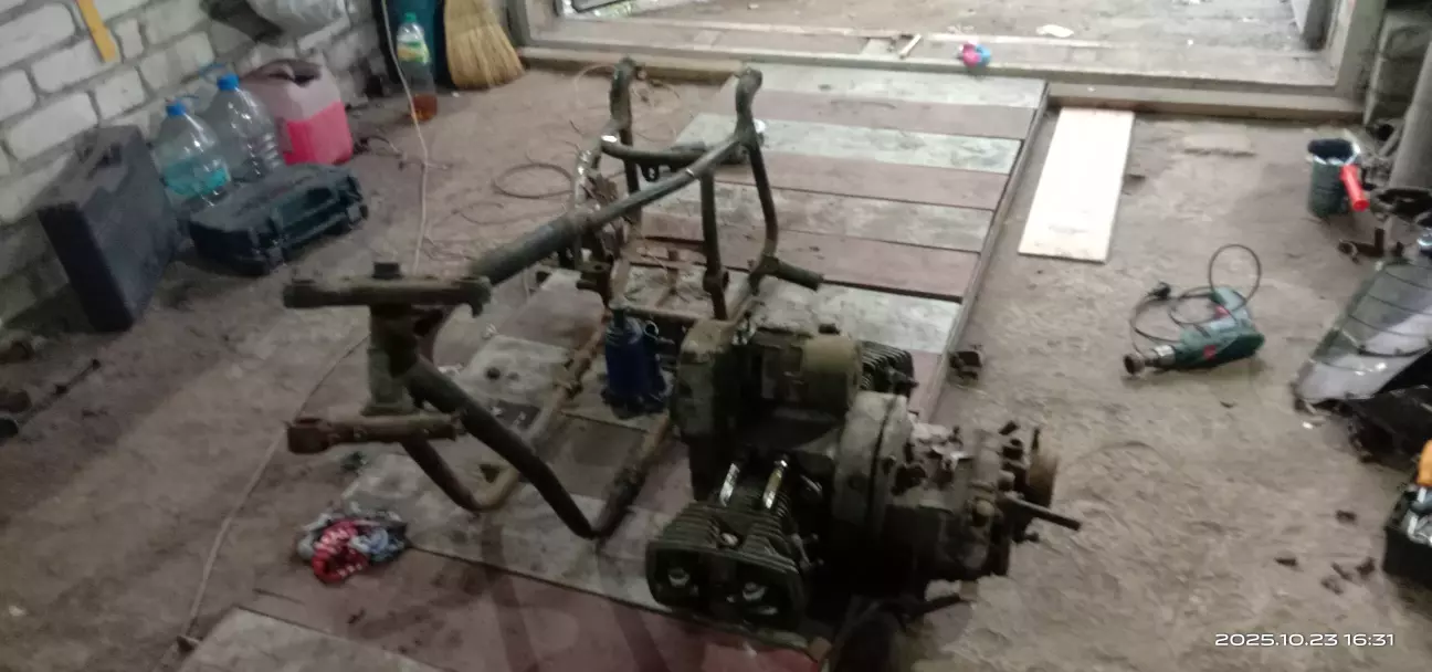 При разборке обнаружилось пару неприятных сюрпризов первое,не смог снять КПП от двигателя, вместо одной шпильки не понятно что.второе,лопнувшая траверсы передней вилки.буду потихоньку искать вилку,переднюю фару на одном креплении и стопка от газона,круглый.если у кого есть, дайте знать.