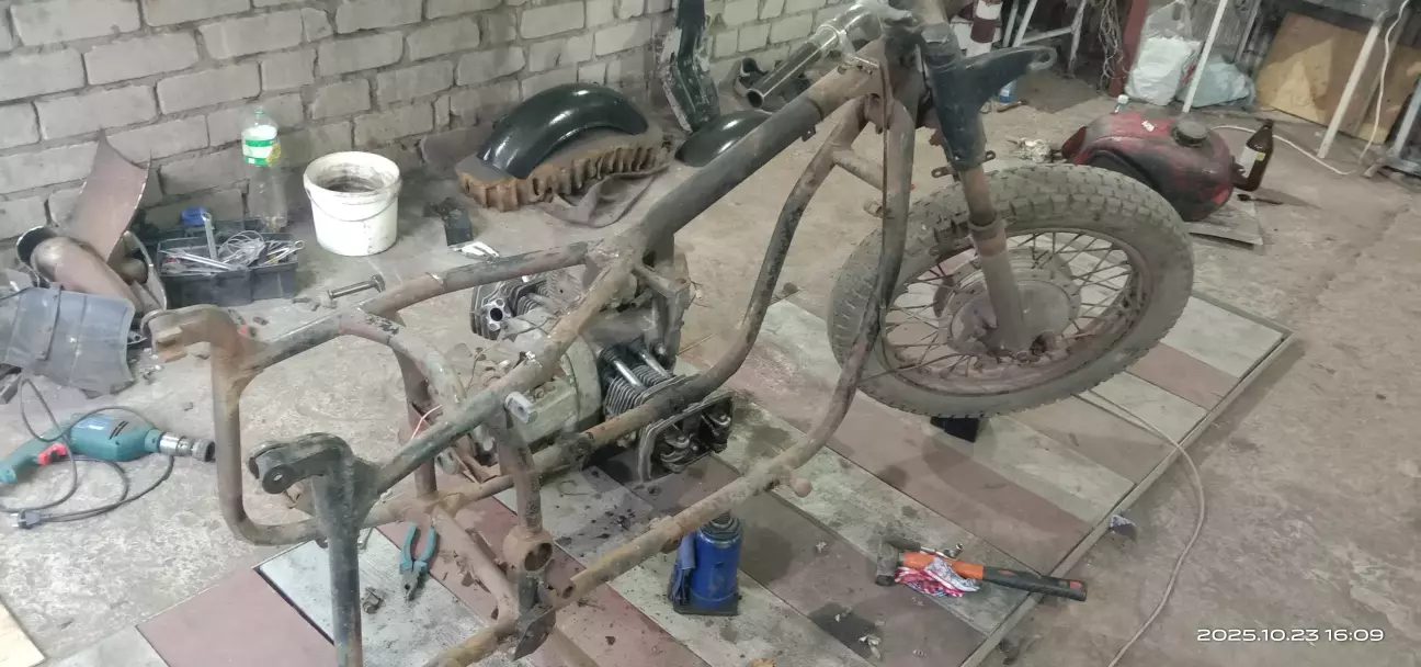 Вроде бы сделал что хотел.еще нужно сделать крепление передней фары,и к.уши и родную фару хочу убрать.сделать крепление номера и заднего фонаря,сбоку.приборку родную, наверное тоже уберу,пока не решил.дальше полная разборка,покраска рамы,потом всё в обратном порядке.
