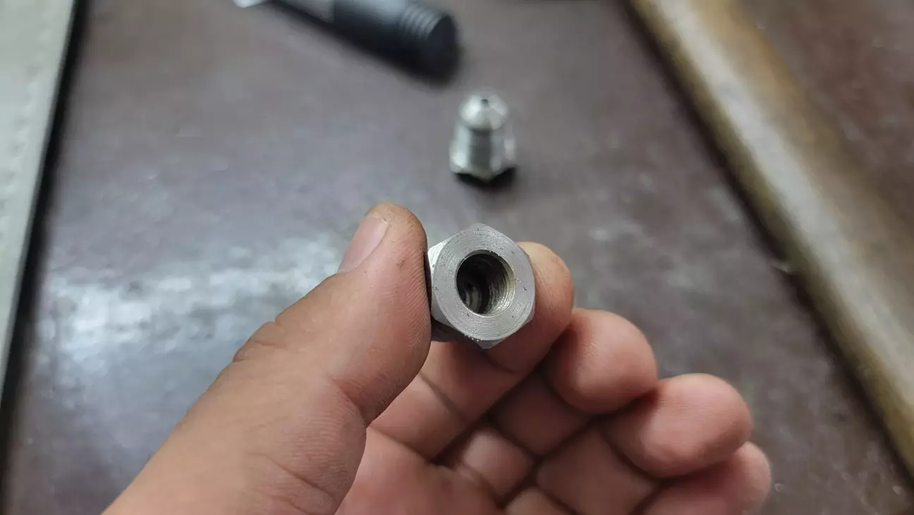 Далі відмінності по ГГЦ, а саме що він прийшов під М14х1 штуцера. А в мене трубки зі штуцерами М10х1. Діаметр циліндра його був 25,4мм (проти рідного 22,2 по версії чату ГПТ) Ну і кріплення авжеж треба було пересвердлювати у моторному щиті, але це мене менше за всього хвилювало. Так як штуцера кардинально різні, то цю проблему може вирішити тільки майтер токарного кунг-фу: мій батько. Тож я його попросив виточити мені перехідники з М14 на М10. Тим часом, мені теж була робота, вирішити різницю довжини штоків. Міряв я міряв, радився з батьком, і ми вирішили що найкращім варіантом буде тубо зрізати вуха з рідного ВПГ та приварити їх до нового, полуавтоматом! А полуавтоматом варити я вам скажу, як мед на душу наливати) Тож ось що з цього вийшло: