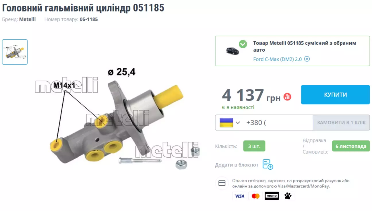 Ford C-Max (DM2) 2л і ГГЦ від нього, який є точно таким, який в мене! Забрав я його за 3300 гримнів. Після оформлення заявки, ціна на нього підскочила. Тобто я урвав останній по тій ціні! Пощастило! Поки чекав коли прийде новий ГГЦ, я зняв той що в мене вже стоїть, і побачив, що на задній його частині, де йде розріз стопорного кільця, висить така собі рижа сопля. Манжети мінус! ВПГ в середині теж був вологий. Дочекавшись нового ГГЦ я його встановив залив рідину у бачок - все герметично, та покликав батька на чергову прокачку, надіючись що все буде добре...