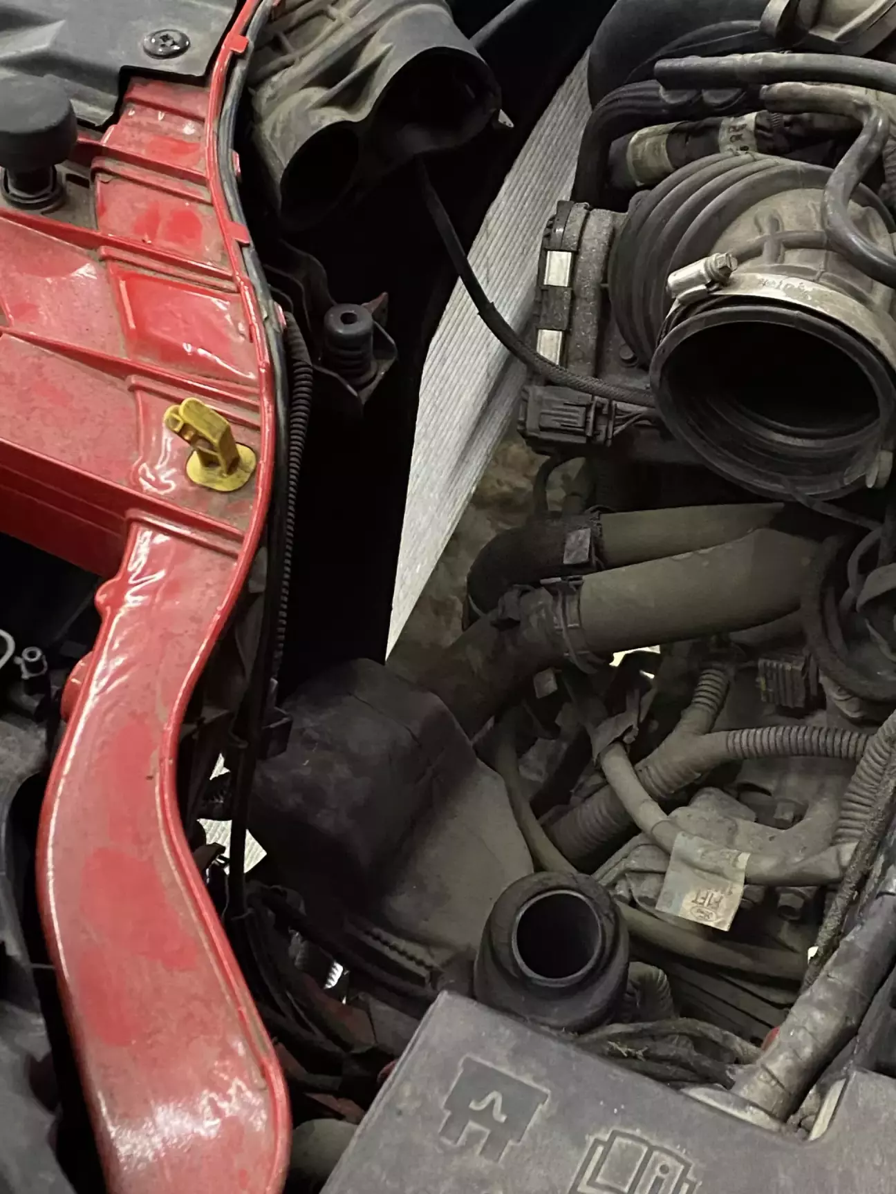 Зняли праву фару, повітряний фільтр, відʼєднали якусь кучку проводів, зняли вентилятор і давай добиратися до радіка. Вони разом зʼєднані між собою з радіатором кондиціонера, там був також квест «відкрути те, що не відкручується» але нічого, з матюками і зусиллями д.Міша знімає потерпілого і вилазить разом з ним з ями. У повітрі витають нотки здивування і тиша. Стоїмо ми дивимось на того доходягу і один на одного. На пластику читається FoMoCo…
