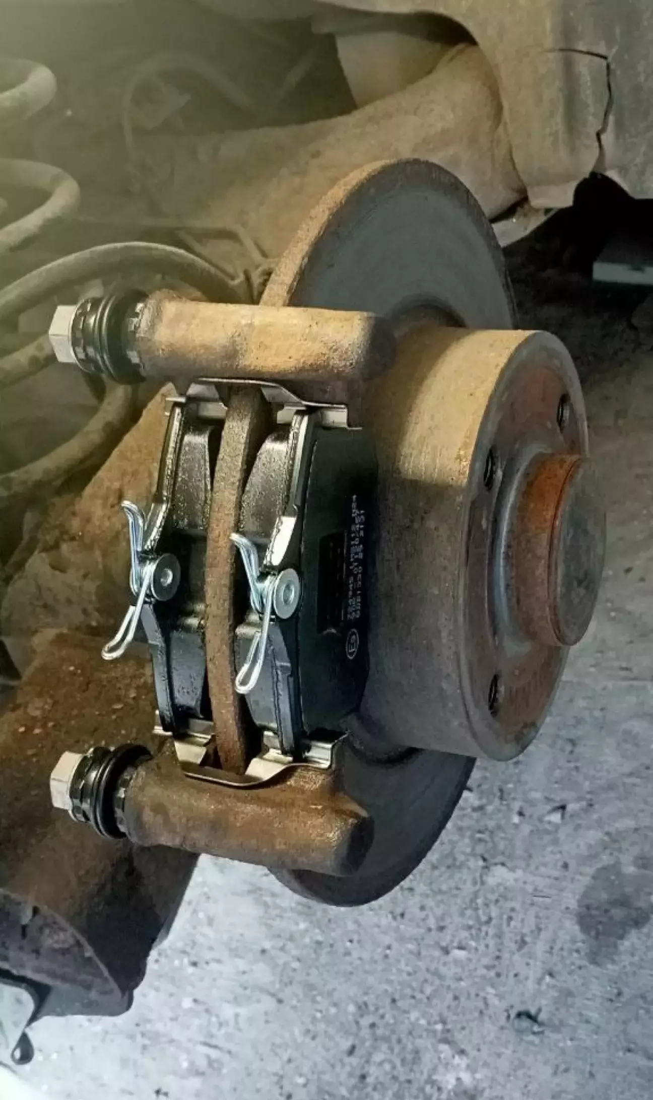 Після встановлення нових колодок циліндр гальмівного супорта підвів до упору в колодку натисканням на важіль ручного тормозу. З бачку шприцом відкачав надмірну кількість тормозної рідини. Проїхався, перевірив - гальма працюють, а от ручник не дожимає. Довелося знову знімати колесо дивитись в чому річ. Виявилося на задньому правому сопорті важіль ручника мав великий ход і пагано підводив поршень. Трохи посмикав його і він спрацював, але все одно на правому супорті важіль м'якший та має трохи більший хід ніж лівий, через це присутній перекіс планки натягування тросу у салоні. Мабуть в майбутньому доведеться міняти правий супорт.