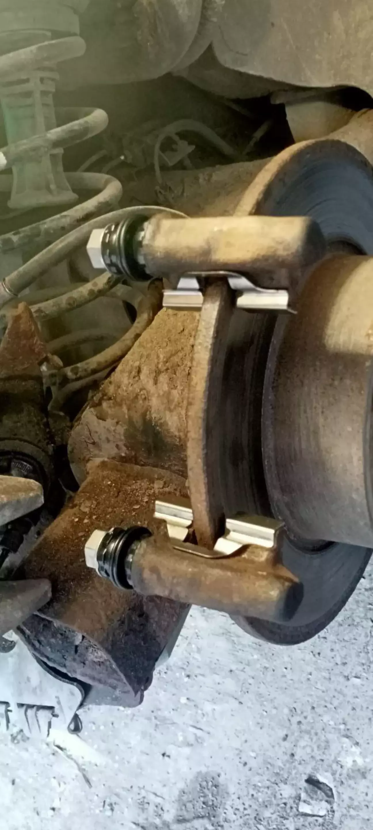 Коли міняли фазорегулятор і машина висіла на підйомнику помітив тріщіни на сайлентблоках задньої балки. Вирішив зробити діагностику ходової та амортизаторів, щоб в один захід потім все необхідне замінити. По амортизаторах все добре, а от на лівій стійці стабілізатора зіскочив пильник та на задній правій внутрішній колодці лишилось 3мм товщіни, хоча зовнішня не дуже зношена. Вирішив задні колодки та стійки стабілізатора замінити самотужки, сайлентблоки задньої балки залишив на потім. Придбав пристосування для розведення гальмівних циліндрів та необхідні запчастини.