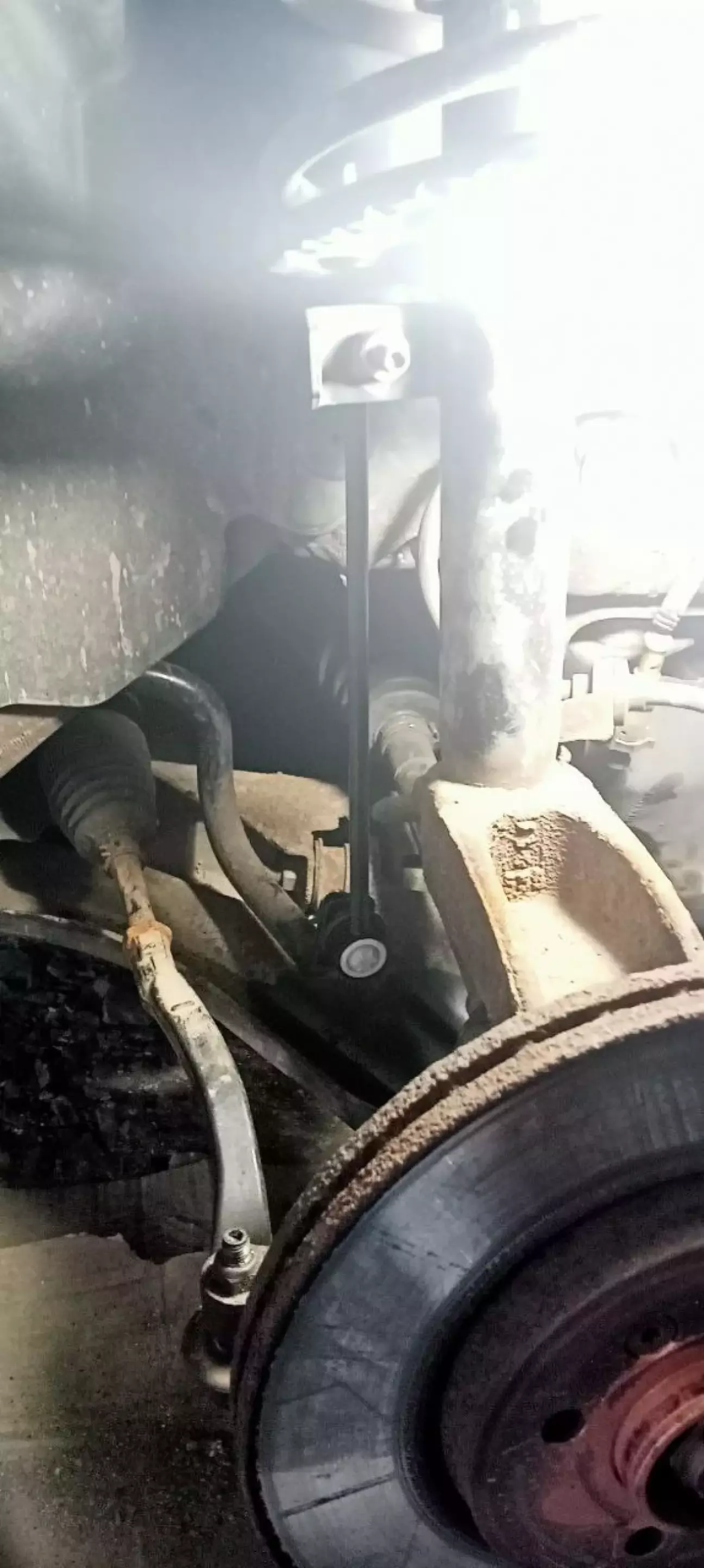 Одну з гайок кріплення стійки стабізатора відкрутив до половини далі не пішла, злизались внутрішні шлиці на болті шарниру, довелося спилювати. На старих стійках пильник фіксувався резиновим кільцем, на нових стоїть металеве пружинне кільце, тому маю надію, що тепер пильник не буде сповзати.