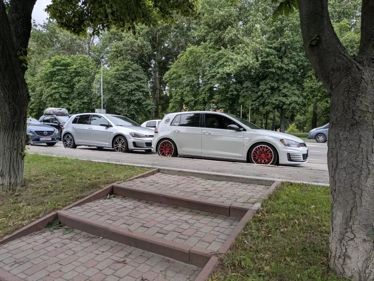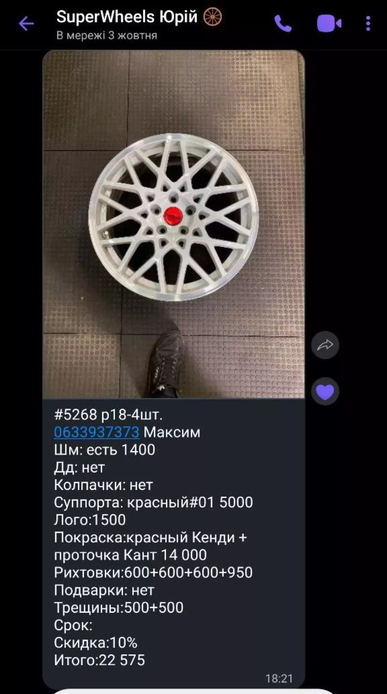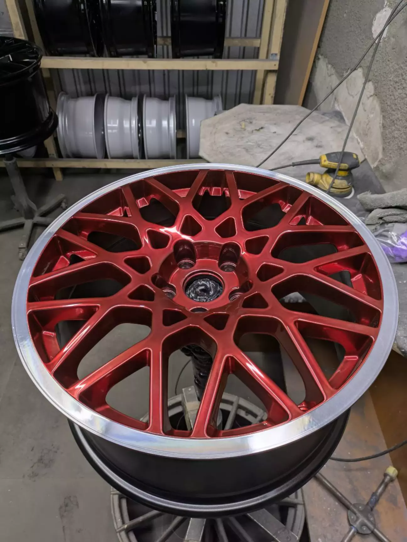 Одразу скажу, що білий колір це дуже гарно і дуже проблематично в плані його експлуатації і нагляду за ним). Так як машина і її оформлення залишається в основних трьох кольорах (білий/чорний/червоний), питання в який колір перефарбувати відпав одразу). Всі роботи як зазвичай робив з "Superwheels". Колір вибраний червоний кенді, з проточкою канта. Проведено роботи по рехтовці та підварці. Також оновлено колір супортів в "червоний порш", змінений штатний заводський сірий колір напису на білий та збільшено розмір самого лого (6500 грн).