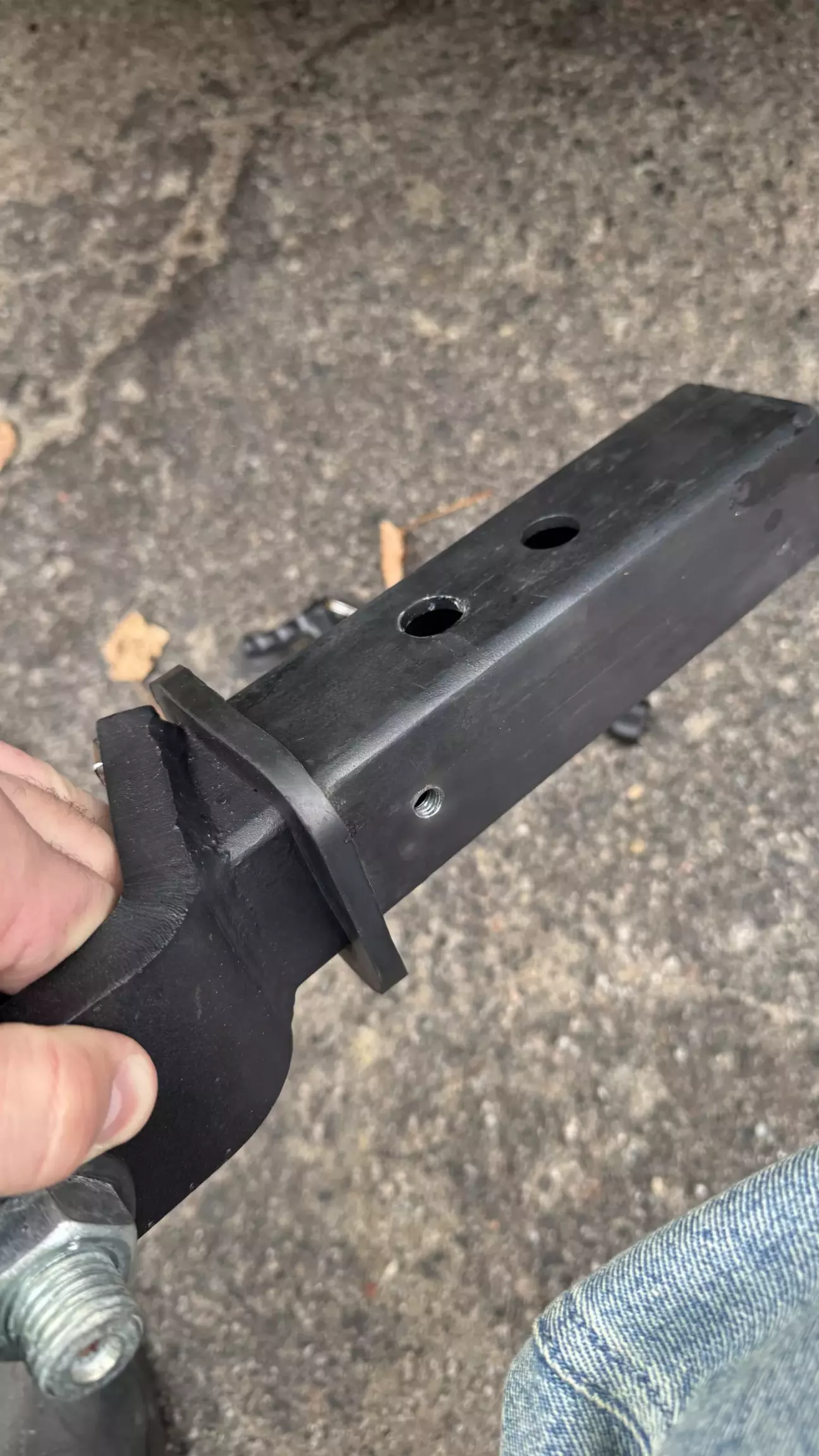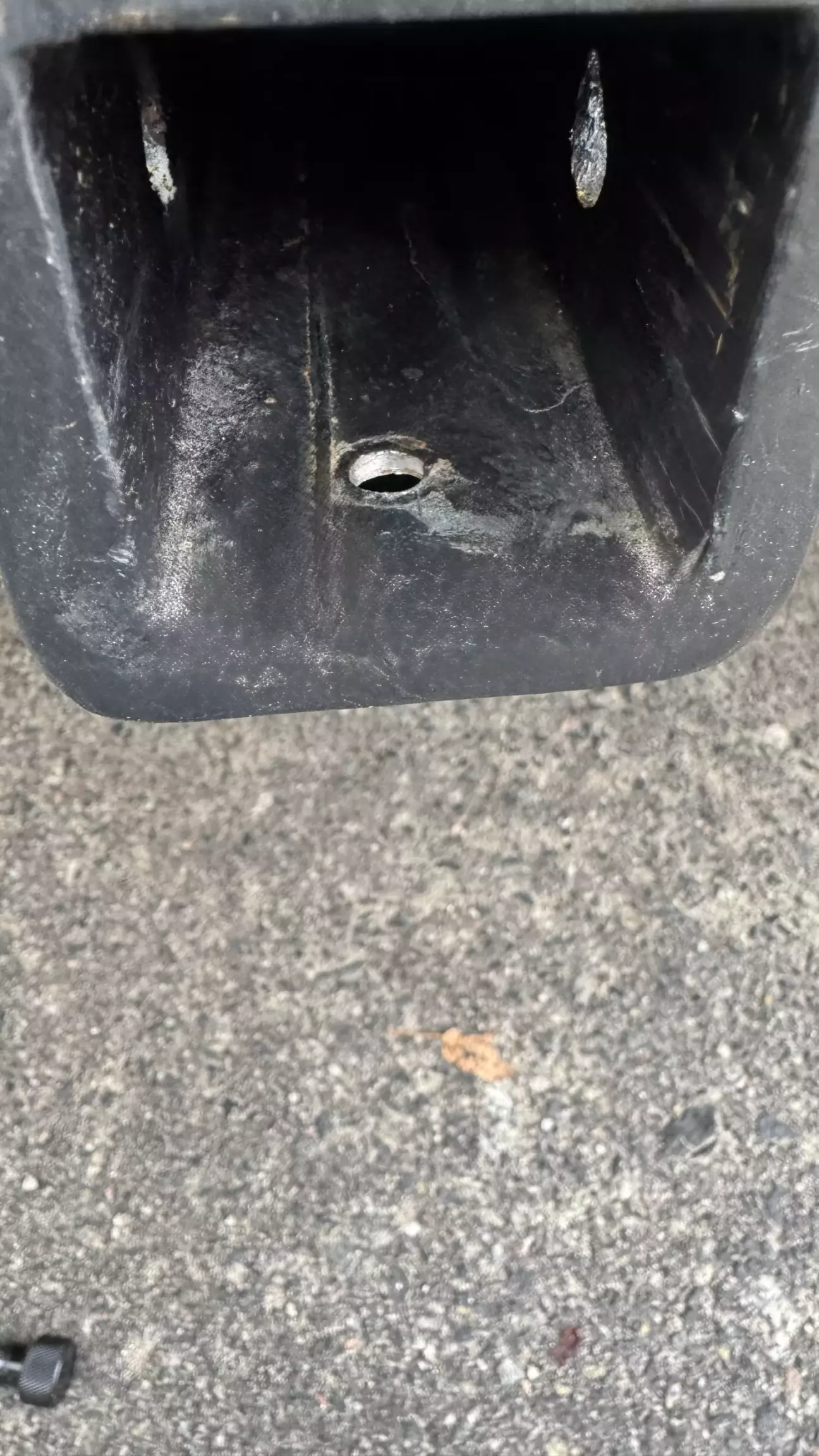 виявив деякі недоліки, а саме було чути стукіт на нерівних поверхнях 😡, і це було чутно навіть без причіпу, треба щось придумати 🧐.Якщо причіп завантажити то все ок 👌. Було вирішено зробити наскрізний отвір з нижньої частини так щоб і фаркоп і вставка були зафіксовані в одному положенні, це робилося для того щоб відцентрувати отвір фаркопу з вставкою в якій буде зроблений більший отвір і приварено гайку щоб можна було закрутити гвинт і прибрати люфт, якщо не зрозуміло то дивіться фото 🤣.