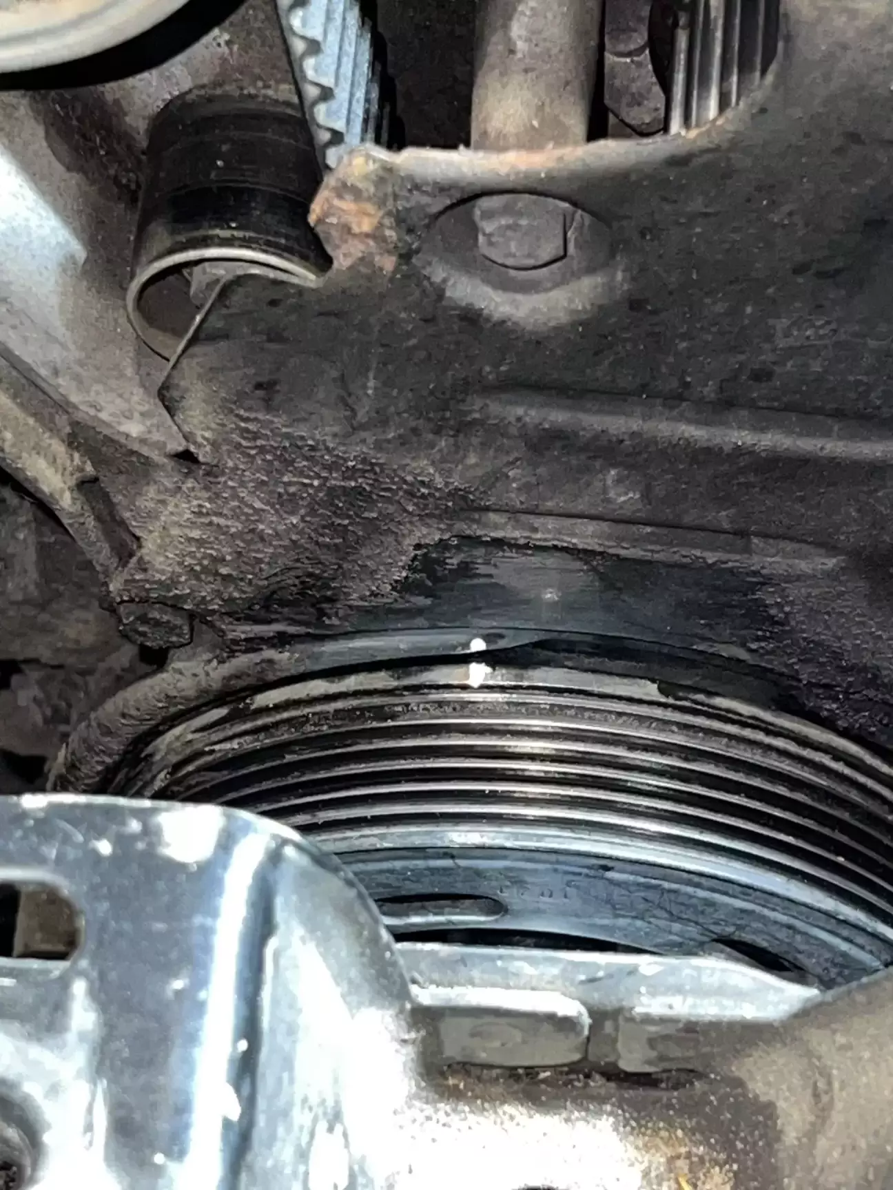 Щоб довго не шукати та не корячитись під машиною, заїхав на підйомник на СТО на огляд. Де і підтвердили що дійсно тече помпа. Заодно поцікавились як давно я міняв ремінь ГРМ 🤔 А я туди взагалі не лазив, а тільки заглядав під пластиковий захист щоб подивитись який ремінь встановлений. І з моменту купівлі авто відкатав я вже 70000 км.