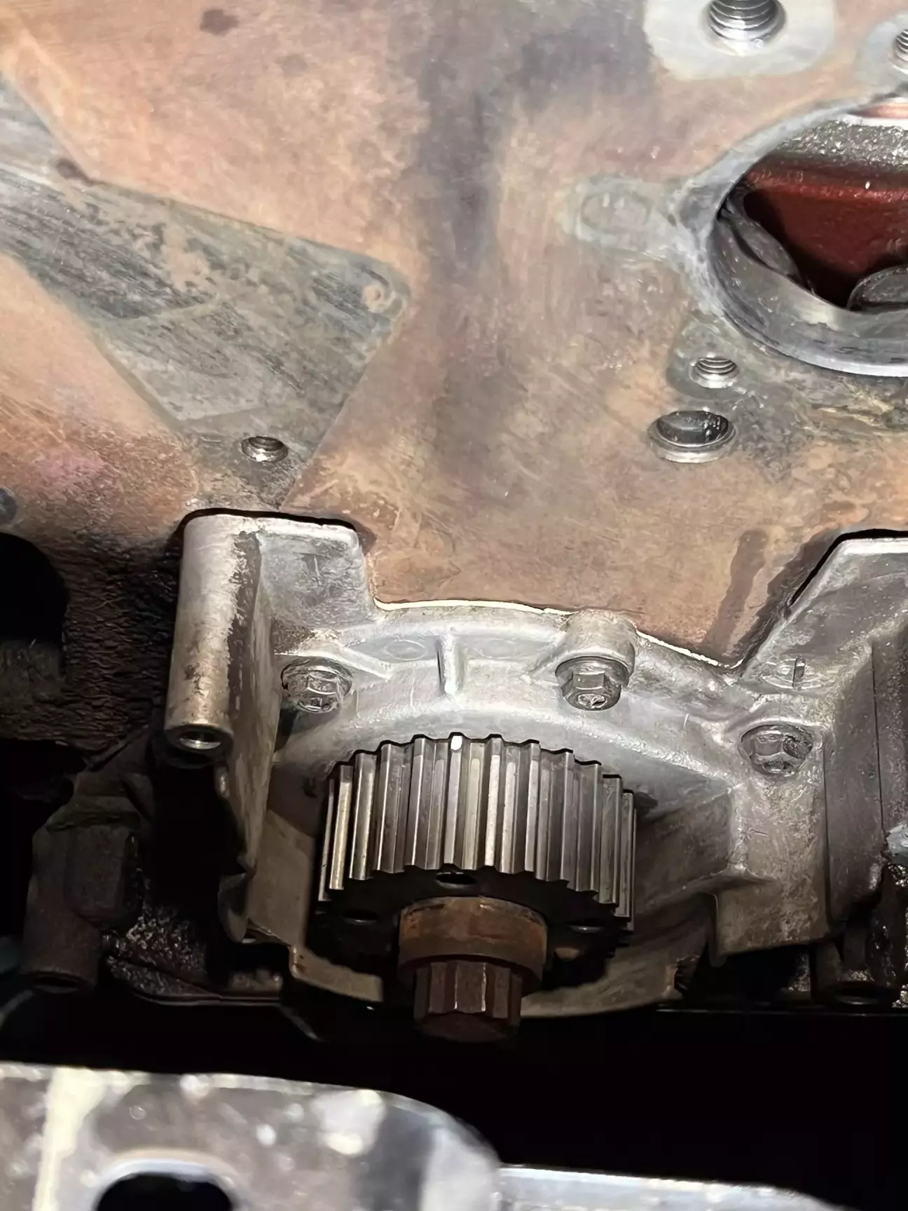 Перед встановленням нової помпи на місце прилягання між блоком та самої помпи я трохи промазав герметосом 😑 (Не на резинове кільце)
