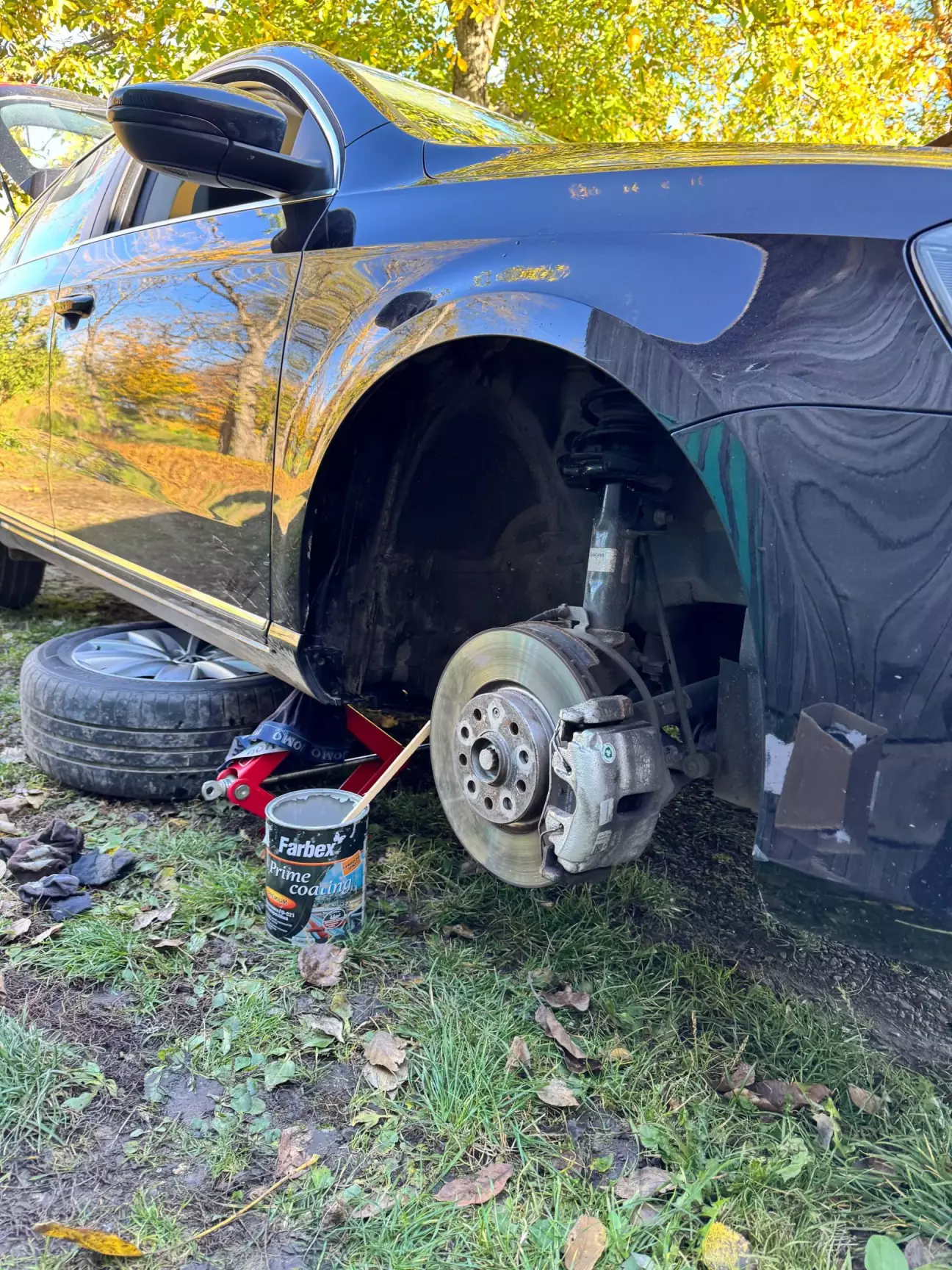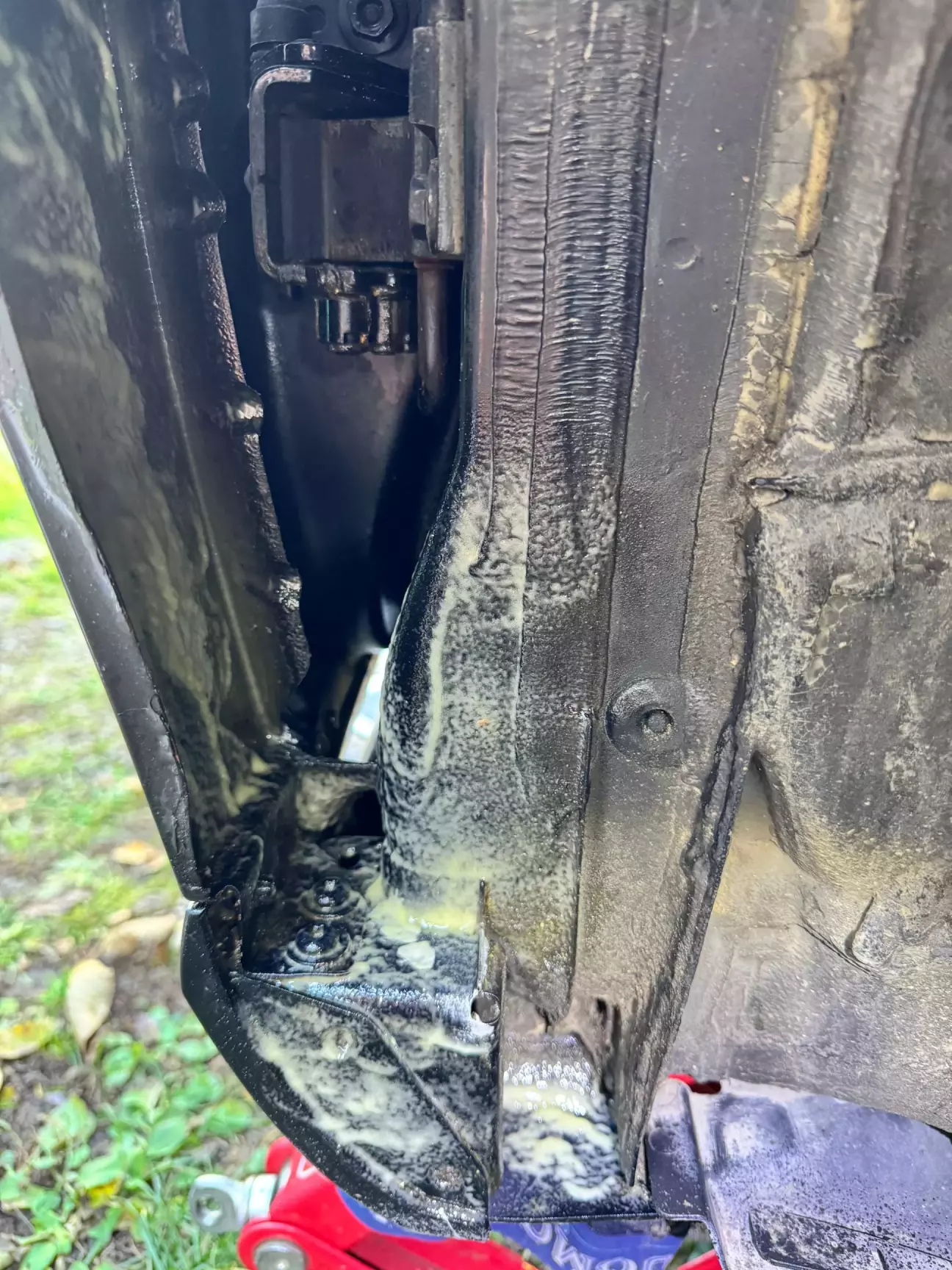 Зняв колесо, зняв локери. Бруду було не багато. Губки зняв і висушив. Очистив поверхню від бруду і минулорічного мовілю. Натяки на корозію обезжирив і обробив грунтом. Після висиханння все задув мовілем.