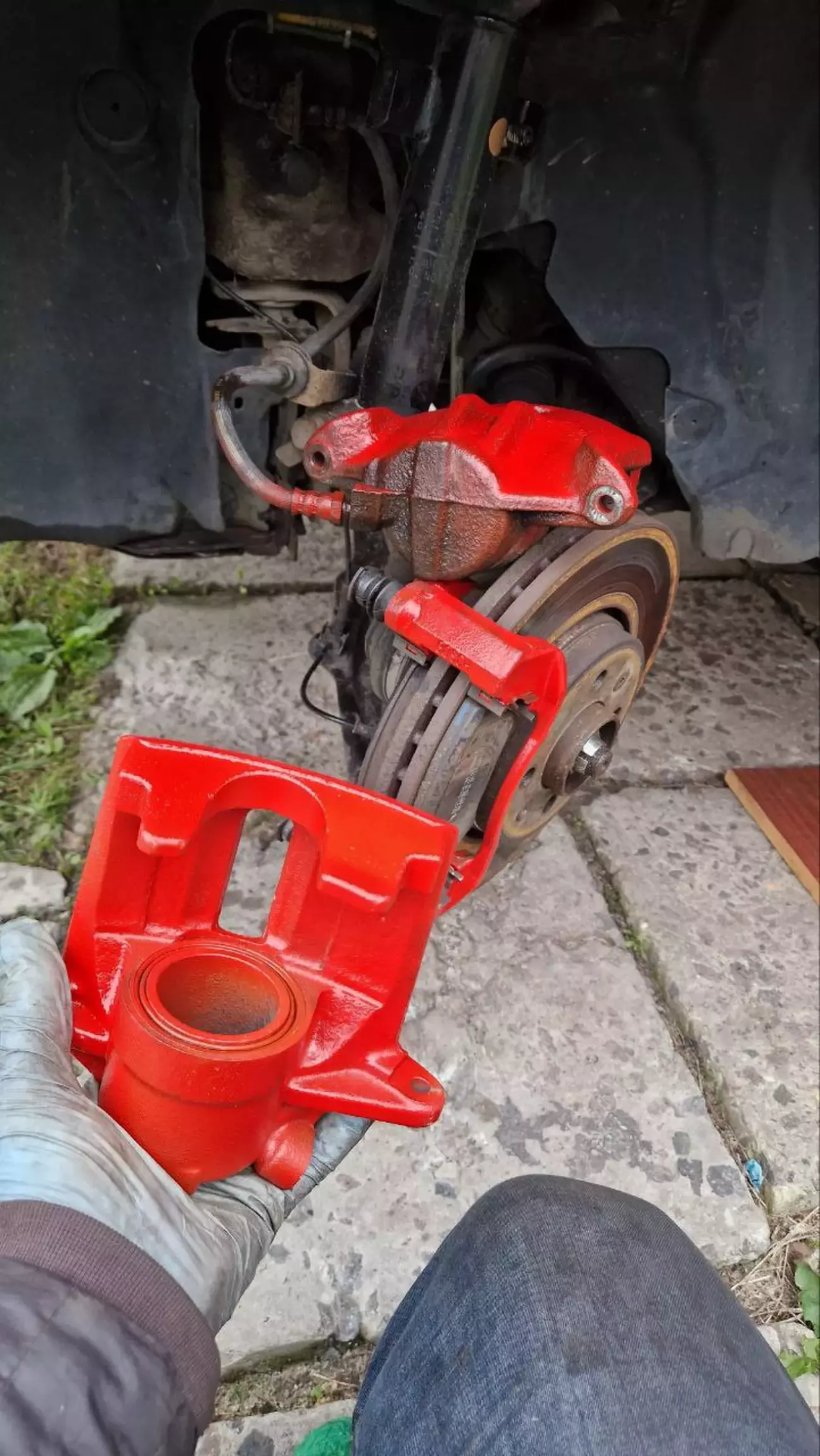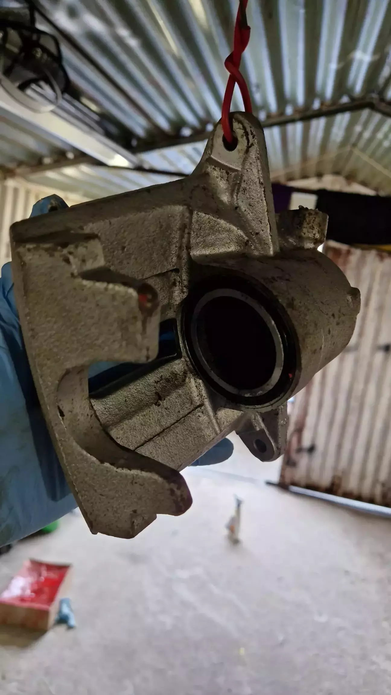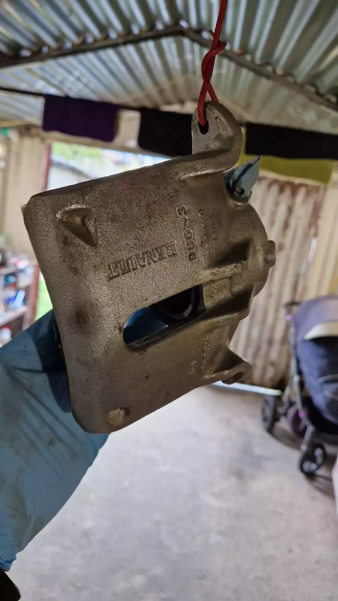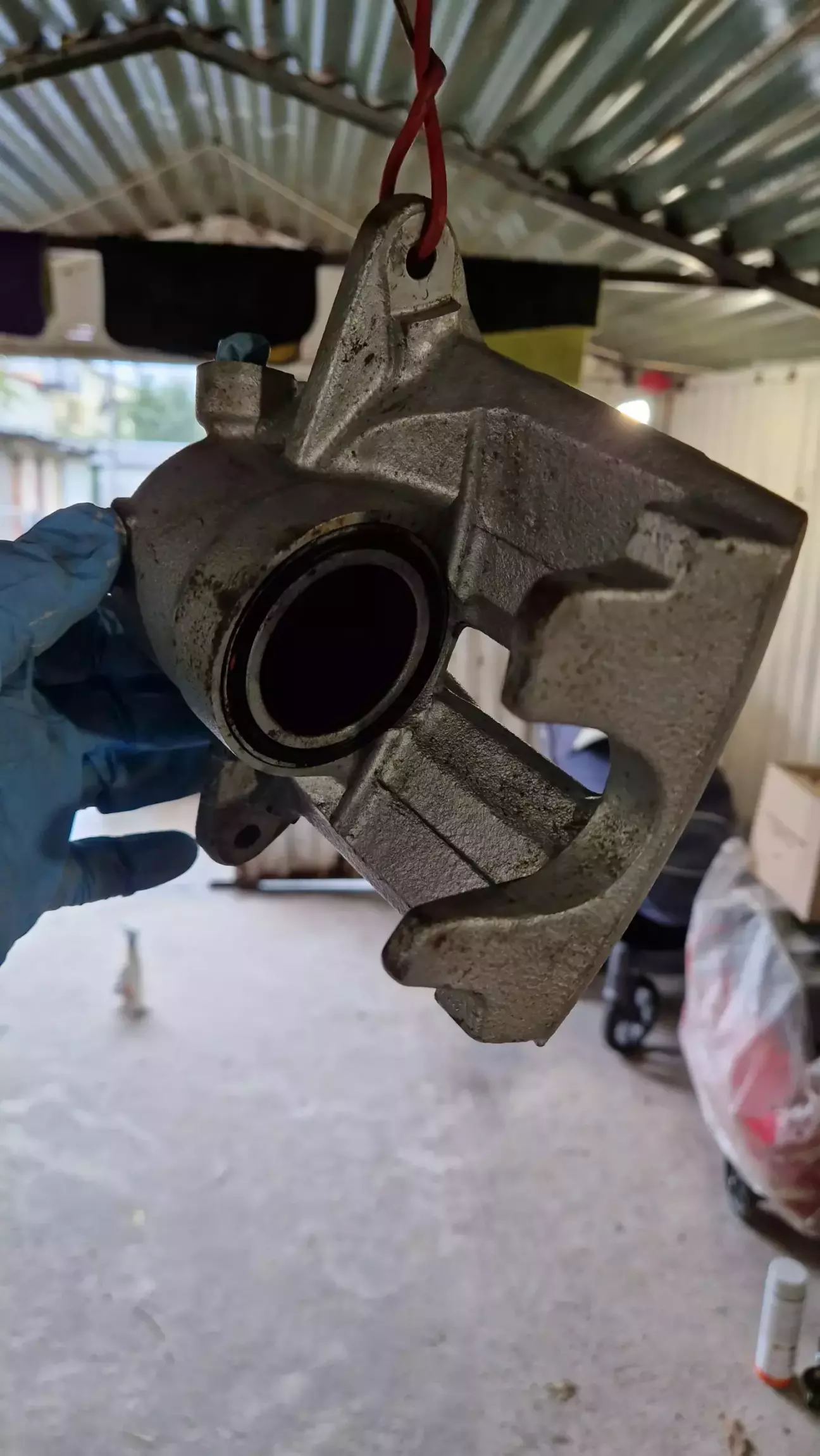 Придбав в знайомого на розбірці такіж передні супорта як в мене і стоять, та щей і відпіскоструєні два роки тому і з відкрученими штуцерами, старі супорта пробував воскресити, гайку приварювати до обломка в супорті, обломується по кусочку, сенсу бавитись з ними немає, добре що придбав інші...