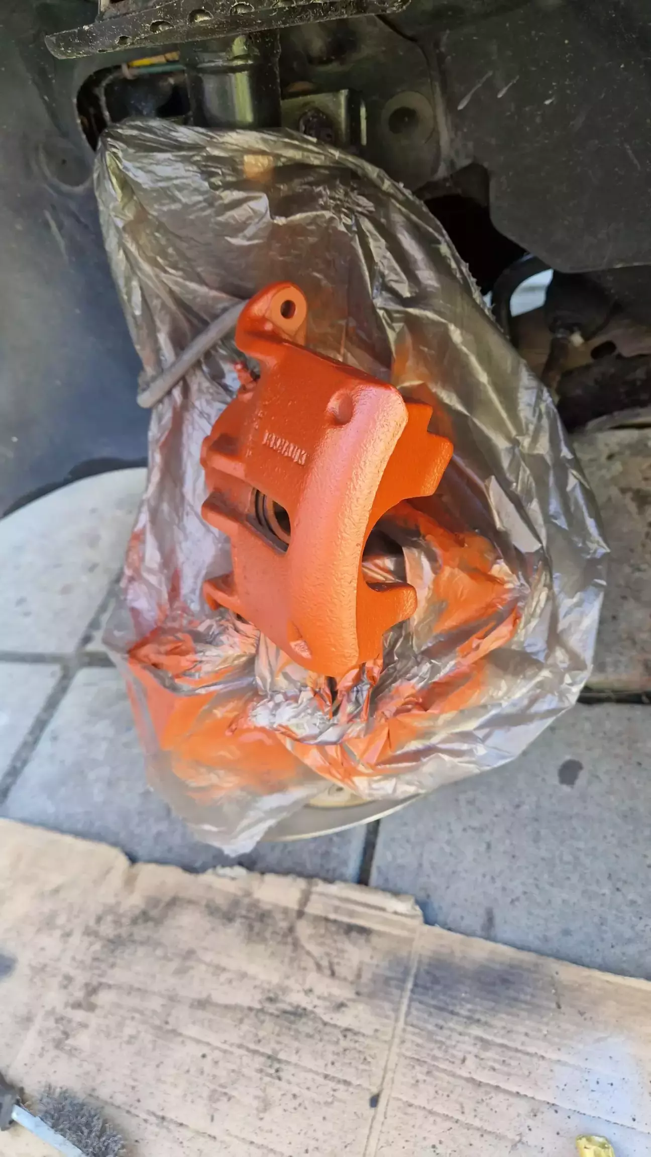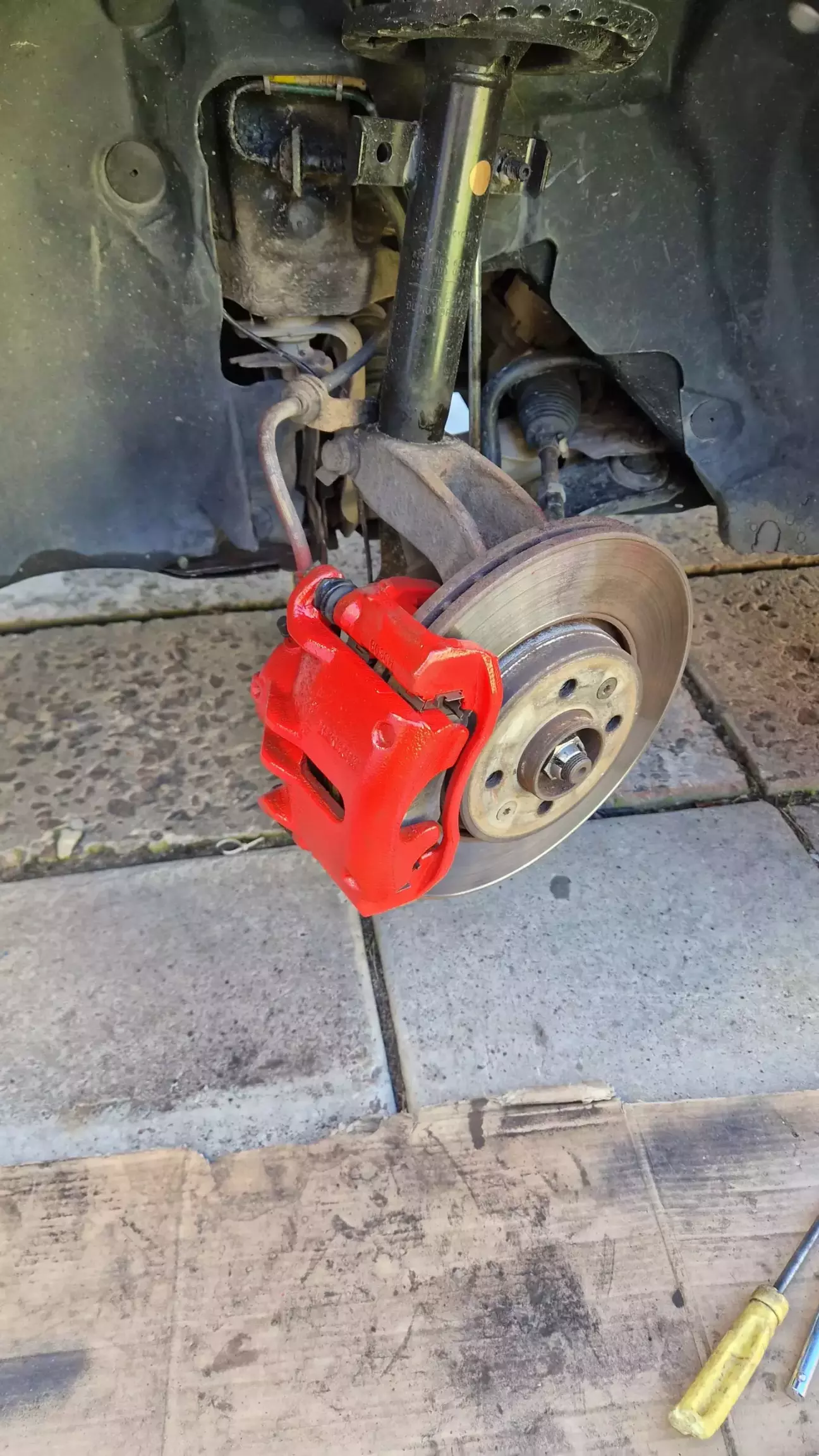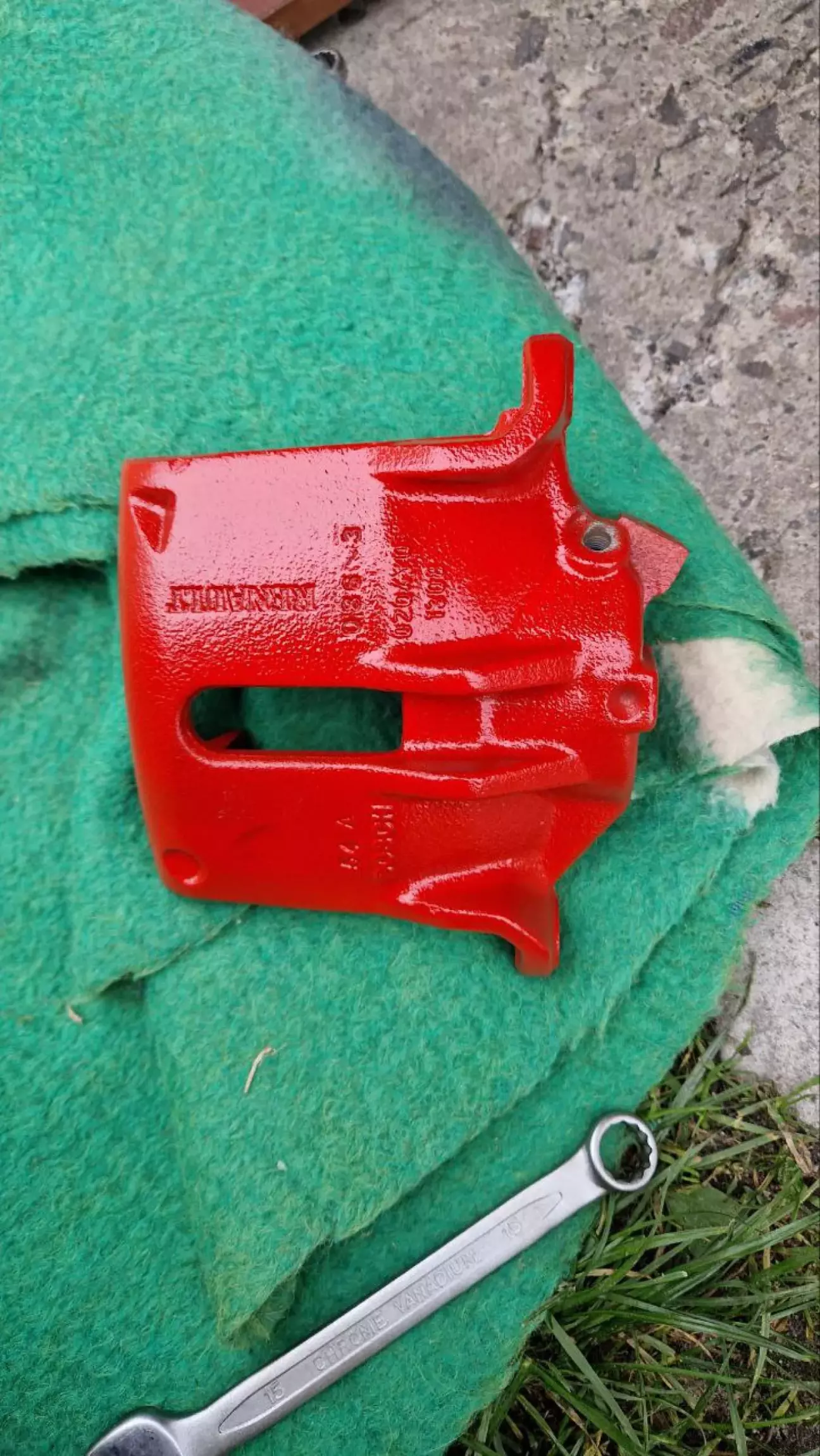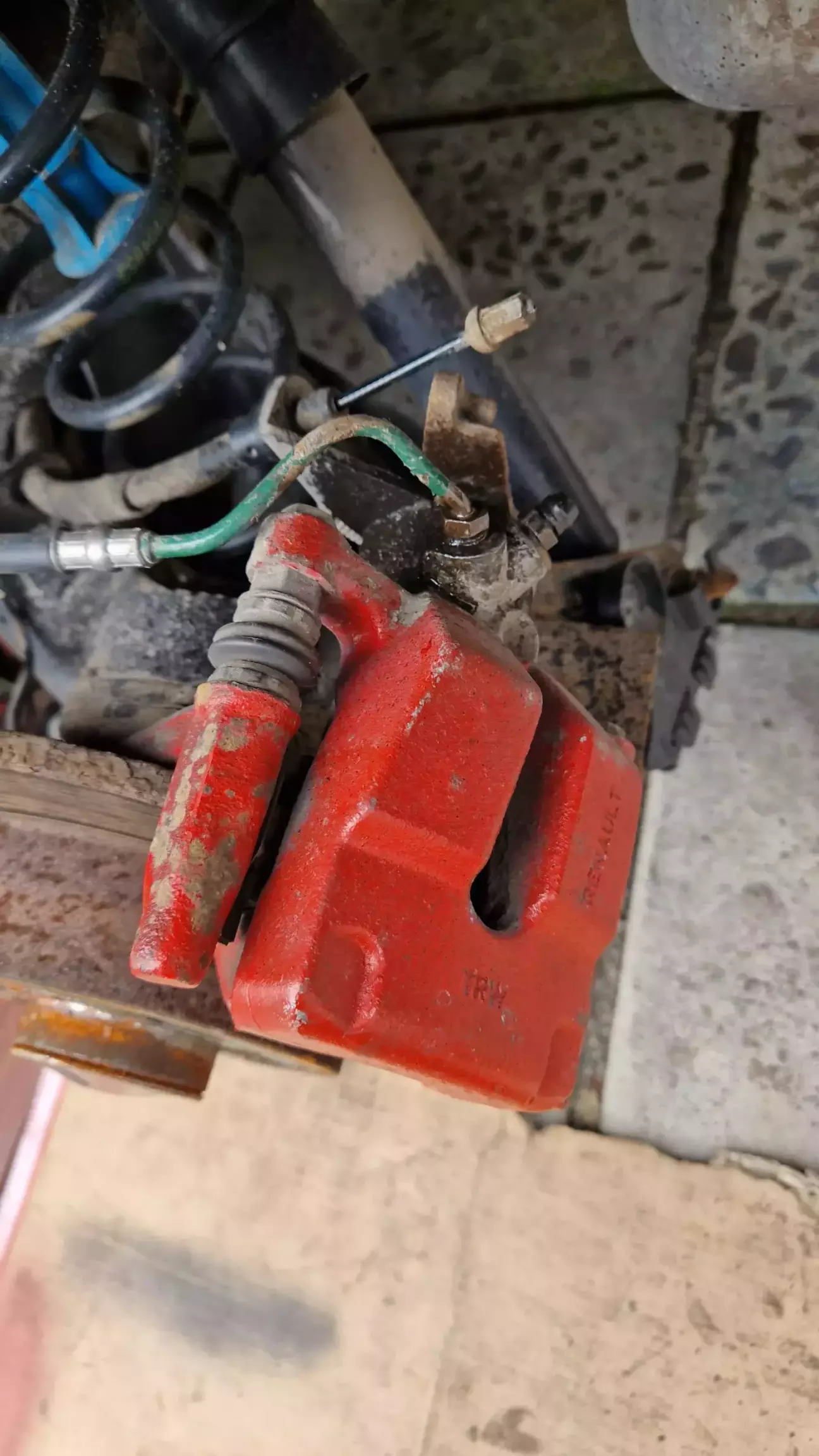 Придбав в знайомого на розбірці такіж передні супорта як в мене і стоять, та щей і відпіскоструєні два роки тому і з відкрученими штуцерами, старі супорта пробував воскресити, гайку приварювати до обломка в супорті, обломується по кусочку, сенсу бавитись з ними немає, добре що придбав інші...