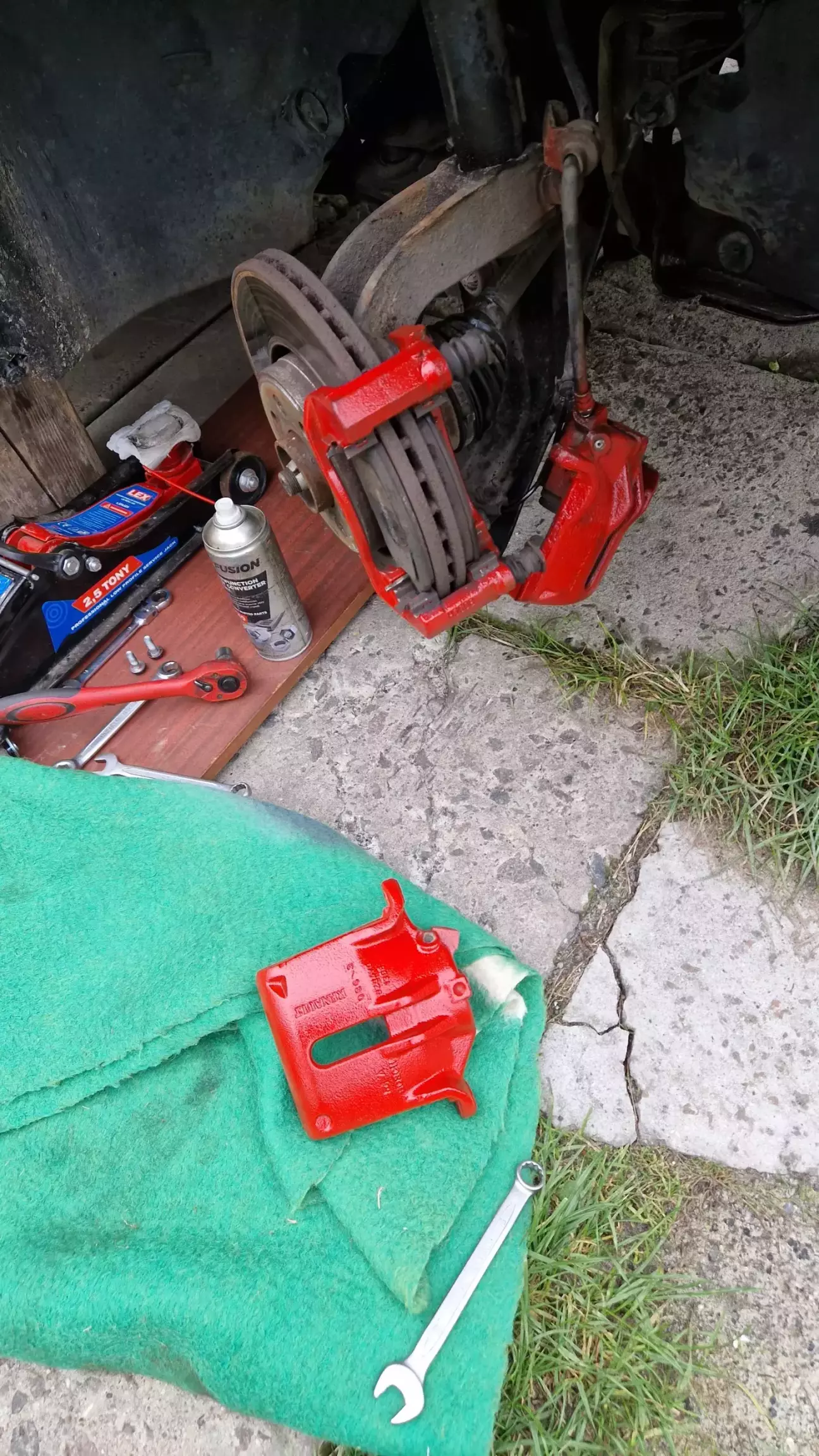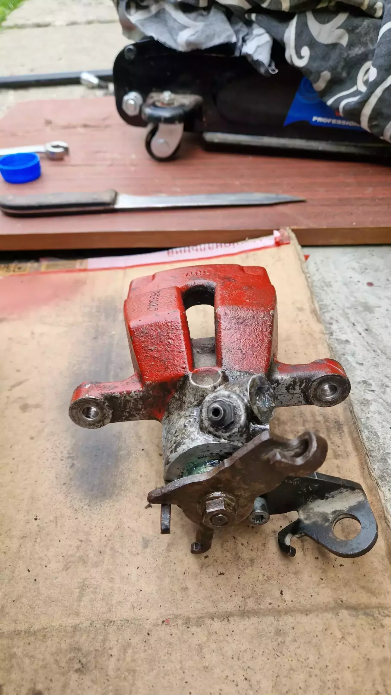 Плани мої, поміняти тормозну рідину, обірвали передні супорта на яких штуцера для прокачки обірвались ніби вони на суперклей були приклеяні, на іншому супорті ніякі прогрівання і постуковання не допомогли, приклавши по відчуттях 10-15Нм сили до штуцера він чудово обламався теж і того -2 супорта, поліз також зразу і до задніх, як то кажуть "горить хата й горить сарай", все рівно потрібно знати для себе що робити дальше, відркучу я задні чи ні, на диво вони відкрутились.