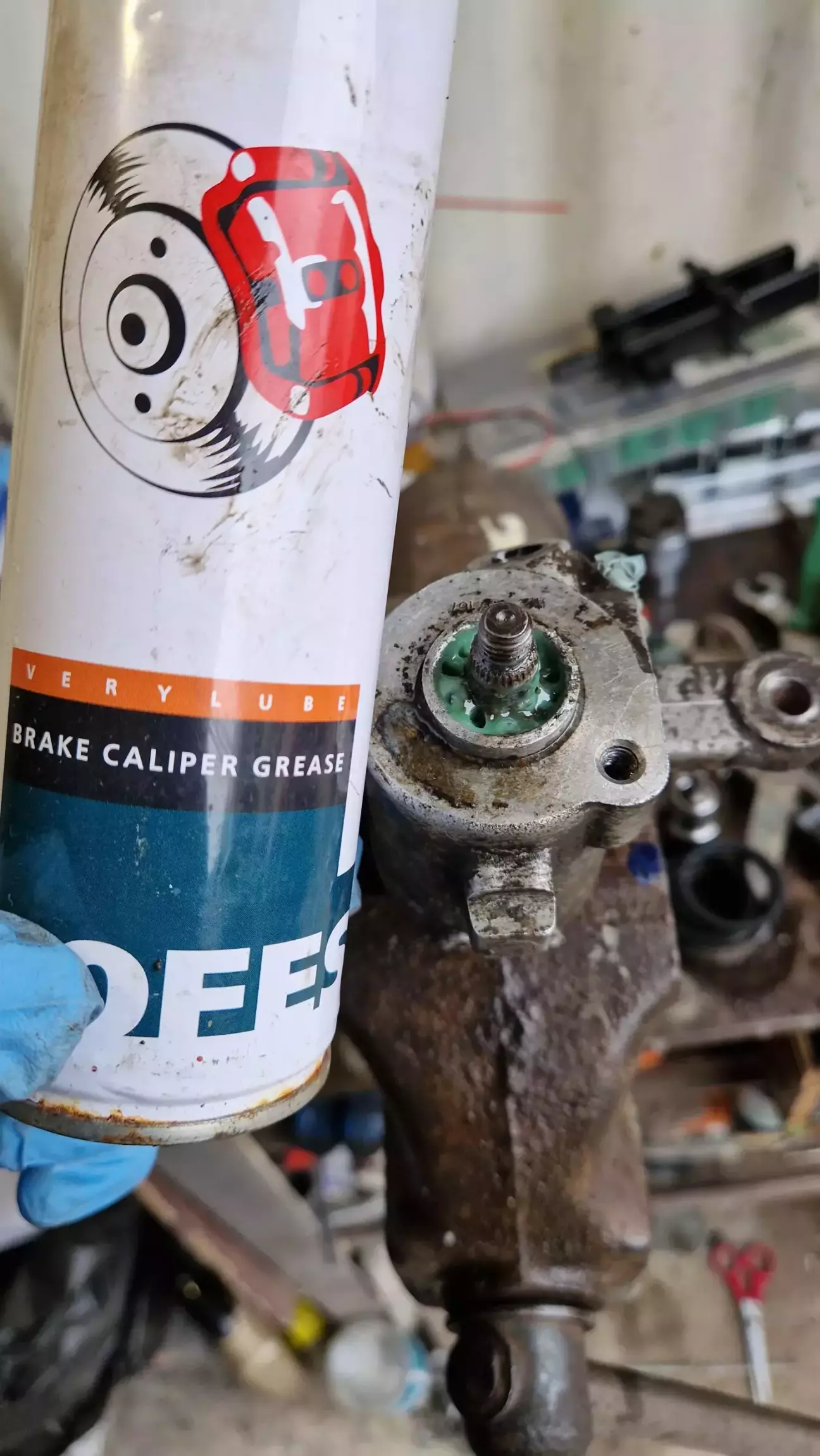 Задні супорта окрім лівого який знявся хочаб теж сюрприз принесли, правий супорт, трубка подачі тормозної рідини в ніяку не відкручувалась, ну я не став випробовувати долю, перебрав цей супорт на авто. В лівому супорта відчистив шток ручника, супорт окислився і почав здавлювати шток ручника, тому так погано він ходив, все це діло розробив, промив ВДшкою, і залив  змазкою для супотів в спреї від Хадо, вона досить що під тиском спрея подається в щілину щей перебуває в рідкому стані перші 10с, потім густіє, має довго прослужити ще супорт. Поршень відкручував/закручував газовим ключем, на поршні є за що ним зачіпитись, на жаль не мав з собою зйомника.