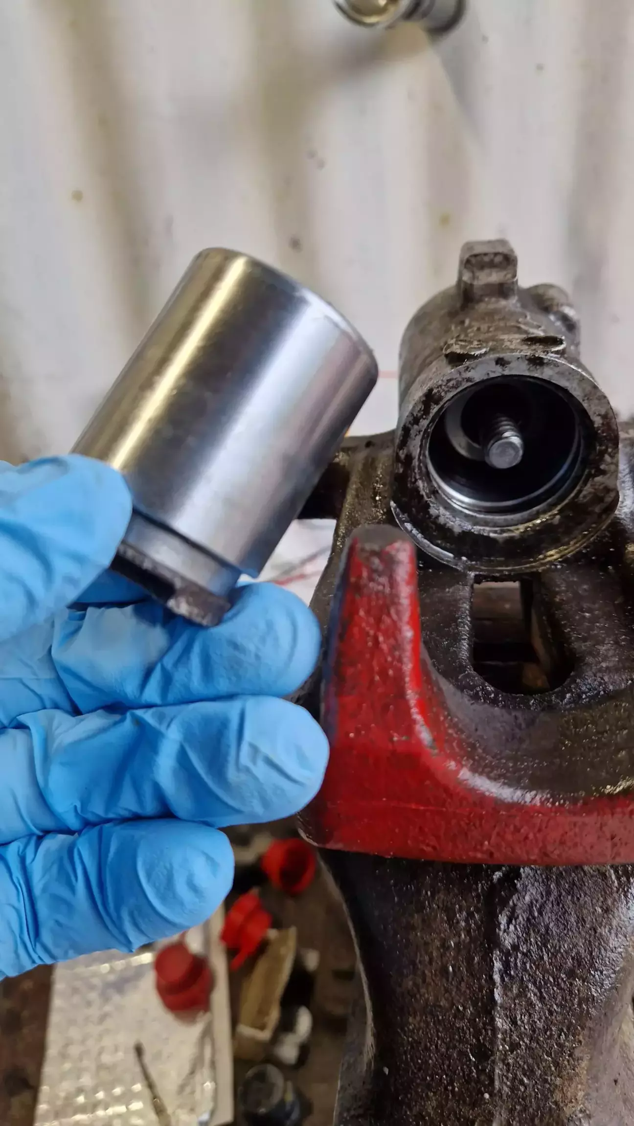 Спочатку перебрав "нові" передні супорта, поршень видавив компресором, скажу вам небезпечна штука, поршень вилітає як куля, не булоб опори для колодок, хто зна що він міг би натворити, на інший супорт вже поставив ручку від молотка аби вона пригальмувала постріл поршня))) пильники і манжети в них були в ідеальному стані, навіть не купляв ремкоплект, гарно відмив поршень, під манжематою і т д, змазав поршень і манжету зновуж таки TRW pfg110, нажаль ATE 03.9902-0521.2 в мене не було, трв теж підходить для таких цілей. Трішки награвся аби поршня в пильники засунути, зновуж таки прийшов на поміч компресор. Звичайно погрунтував супорта і покрасив вже після того коли зібрав їх