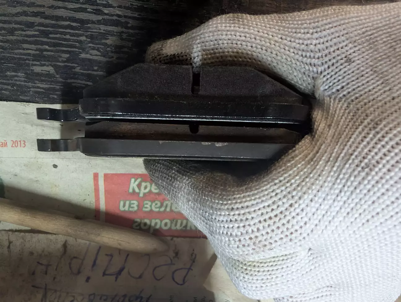 Для порівняння - нова колодка і залишок тої, що відкатала ≈15 тисяч км