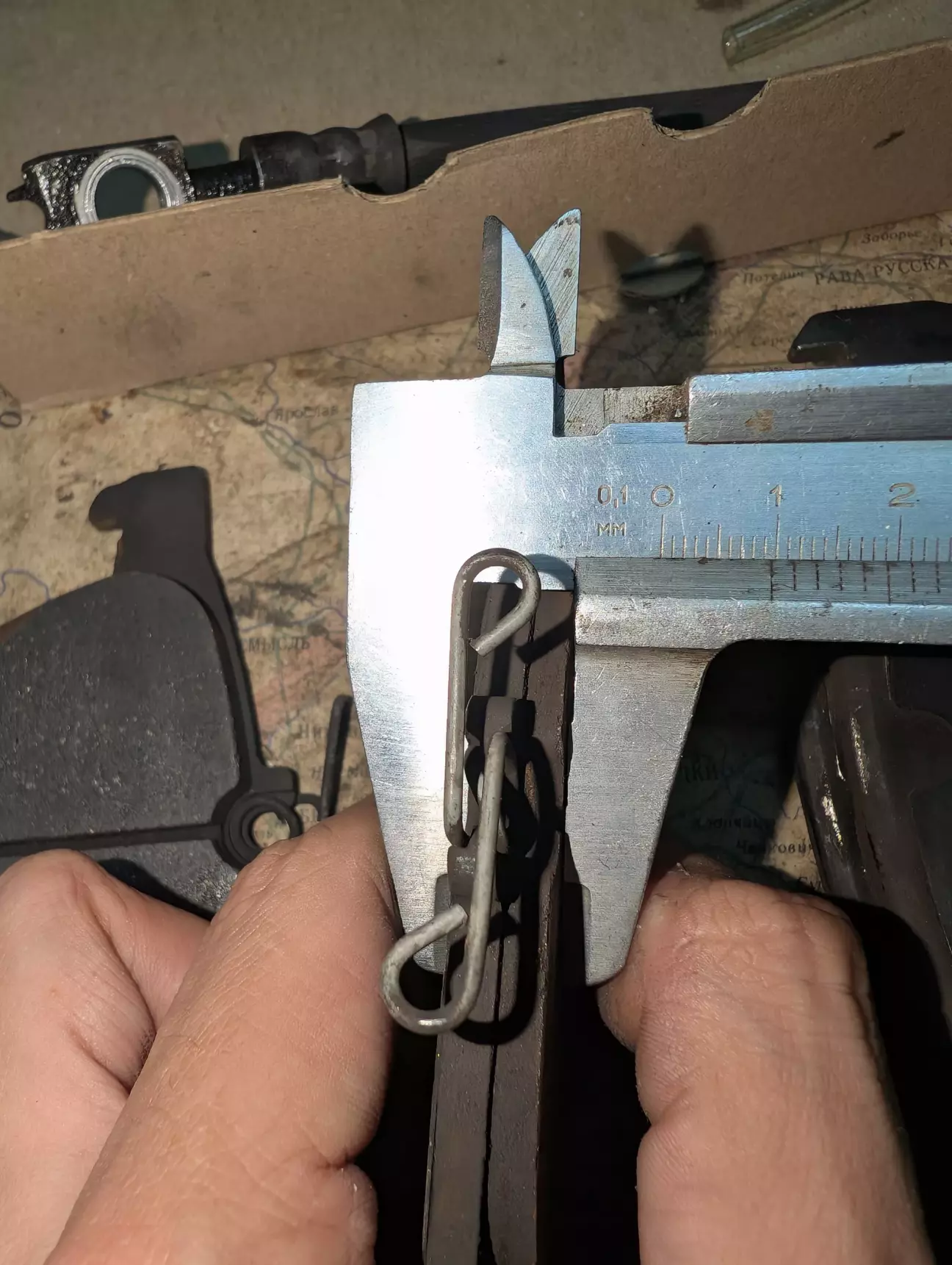 А це порівняння лівої і правої внутрішньої колодки. Ліва має трохи більший знос, але в принципі, різниця в нормі, хоча і близька до межі