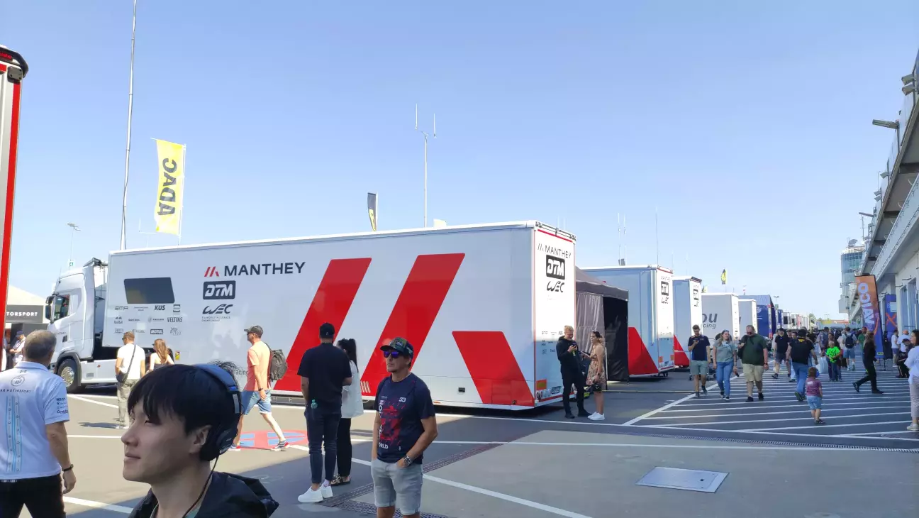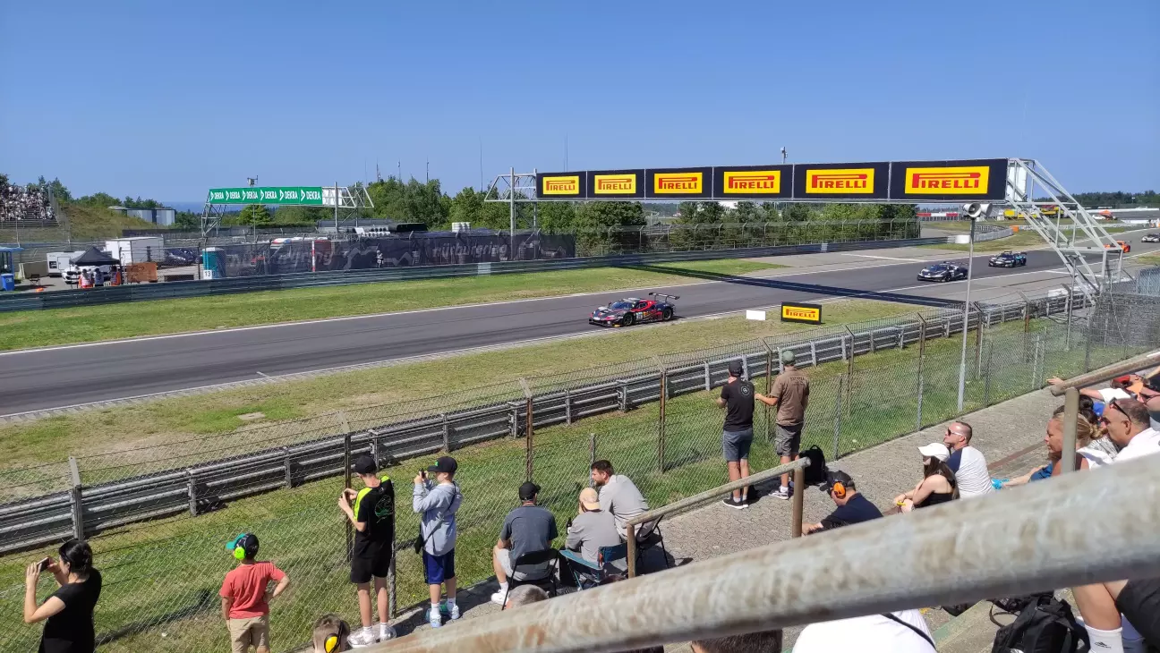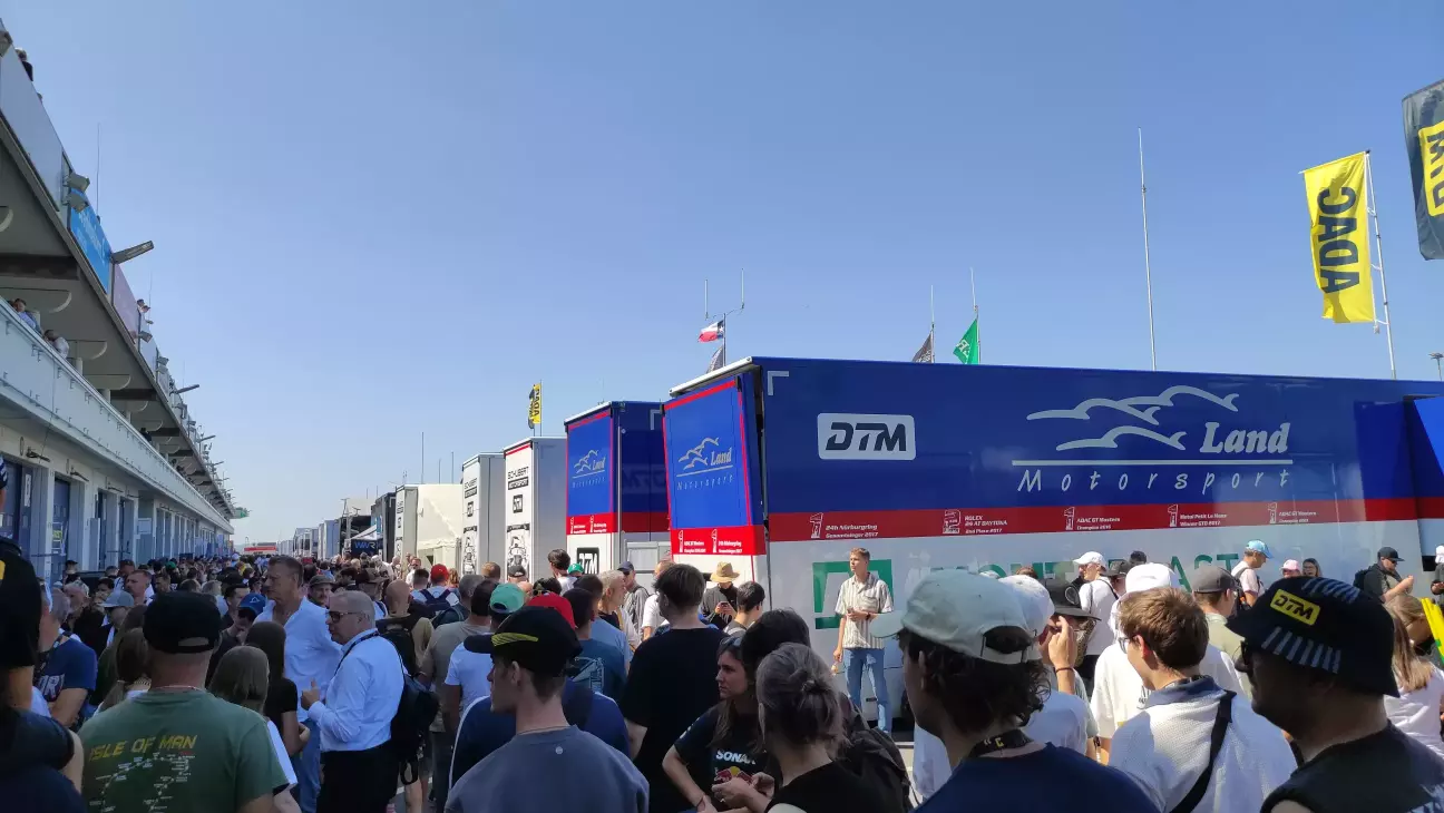 Коли всіх глядачів вже вигнали з пітлейну, ми прогулялися по містечку команд. Тут панує неймовірна атмосфера: ти бачиш механіків, інженерів, колеса, запчастини - дуже круто побувати посеред цього всього екшену. Доці тут дуже сподобалося, на трибунах вона не розуміла, для чого люди і переважна кількість дітей затикають вуха берушами, коли, по-перше, тут ніразу не заголосно, щоб виникав дискомфорт, а, по-друге, це ревіння ДВЗ ж просто кайф, як можна його приглушувати?! Назбиравши купу автографів від гонщиків різних серій ми повернулися на трибуни. Якщо гонку DTM ми дивилися на своїй трибуні, то перегони GT4 та прототипів ми вже дивилися на топовій трибуні, бо охорона вже не контролювала квитки на вході до трибуни, адже багато народу приїхало на трек лише заради DTM і решта гоночних серій їх не цікавить))) Через високий забор, нехай і частково прозорий, я не побачив якоїсь особливої переваги у розташуванні. Так, є дах над головою і традиційні пластикові сидіння, які ми добре знаємо по футбольним стадіонах, замість картонки, щоб дупа не відморозилася від бетону - це всі переваги 😀 Так, тут краще спостерігати за стартом та пітлейном, проте з наших тралиційних місць краще дивитися під час гонки, є шикана і відповідно зони гальмування та розгонів, де більше шансів побачити боротьбу і взагалі роздивитися авто, аніж коли вони на повний газ пролітають повз...