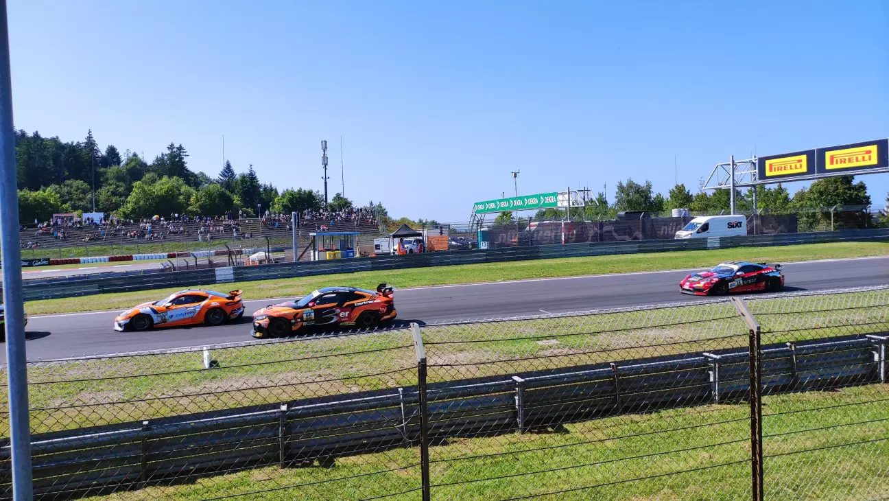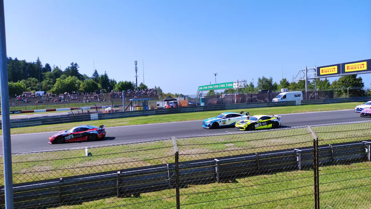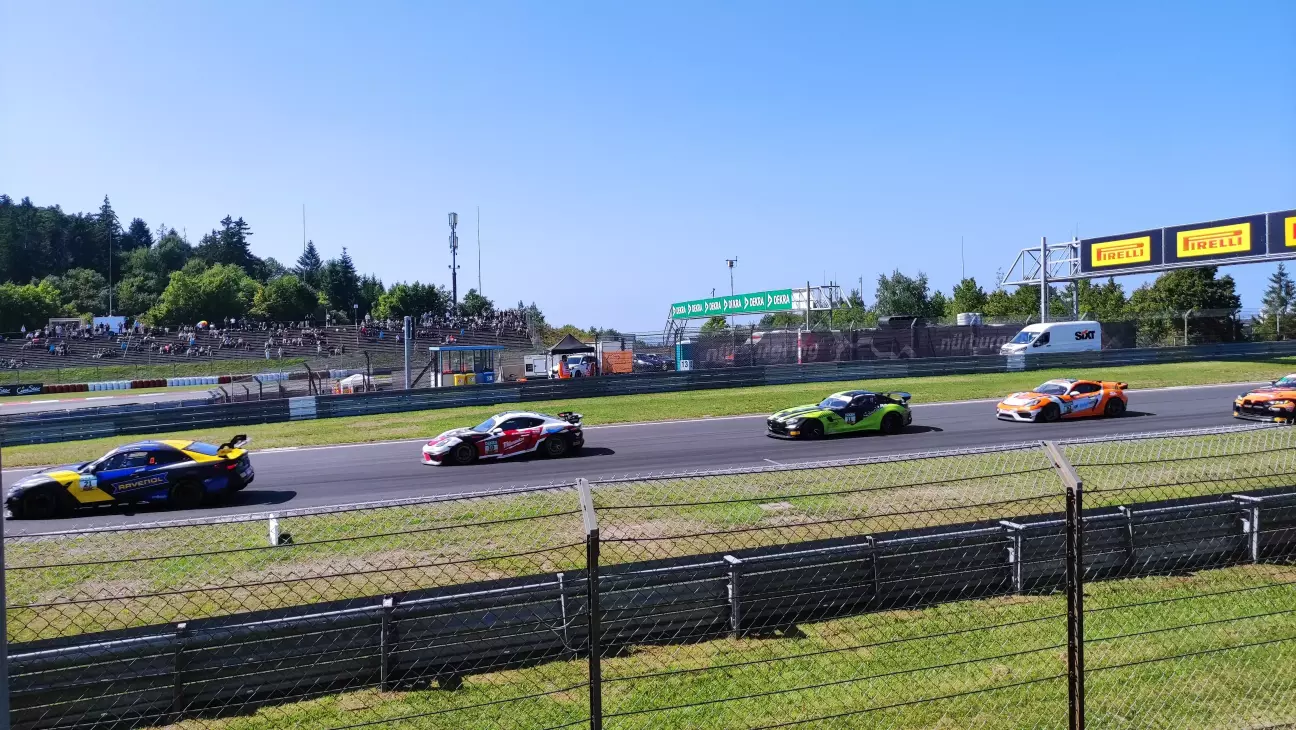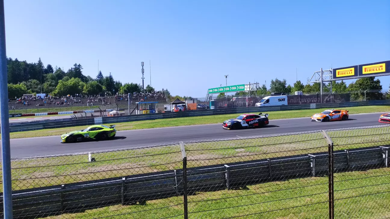 Яким було моє здивування, коли я дізнався, що на одному треку за гоночний вікенд змагаються авто з різних чемпіонатів, а не тільки DTM. Першими починали авто серії ADAC GT4 - німецька серія автогонок створена за зразком ADAC GT Masters у 2019му році і призначена для розвитку молодих талантів. Вона призначена для мінімально модифікованих автомобілів класу Gran Turismo, розроблених для забезпечення відносно недорогого входу в гонки GT нижче потужніших категорій GT1, GT2 та GT3. Основою мають бути серійні автомобілі з річним обсягом виробництва щонайменше 300 одиниць, які підготовлені до гонок шляхом незначних модифікацій. Кузов не може бути модифікований, а аеродинамічні пристрої, такі як крила або спойлери, можуть використовуватися лише в тому випадку, якщо вони вже є частиною серійного автомобіля. Окрім видалення внутрішньої обробки та встановлення гоночних сидінь, модифікації можуть включати лише встановлення нових гальмівних систем, систем амортизації та засобів безпеки, таких як каркаси безпеки або паливні баки для гоночних автомобілів. Двигун та його положення в транспортному засобі не можуть бути змінені. Ціна таких авто складає близько 120 т. євро. Прикладами таких авто є: Audi R8 LMS GT4, Lotus Evora GT4, Alpine A110 GT4, Mercedes-AMG GT4, BMW M4 GT4, McLaren 570S GT4, Porsche Cayman GT4, Aston Martin Vantage GT4.