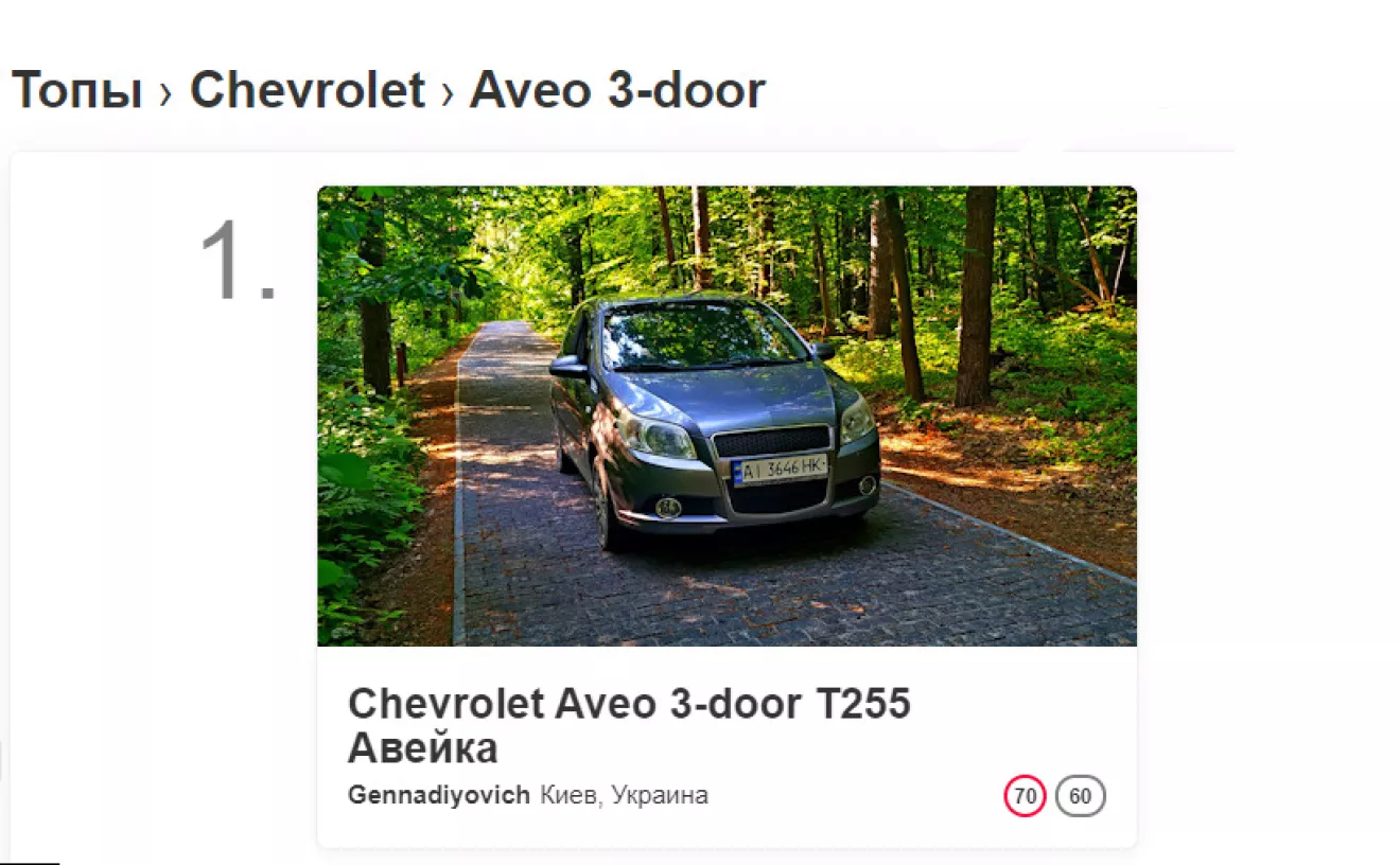 А так же занимает ТОП-1 Chevrolet Aveo 3-door (по состоянию на 27.02.2021)