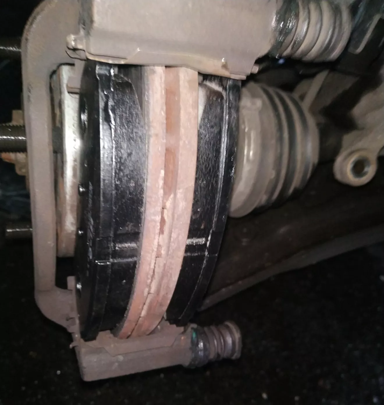 Вышел, посмотрел. И увидел что колодка уже не трет диск, а выгрызает его.