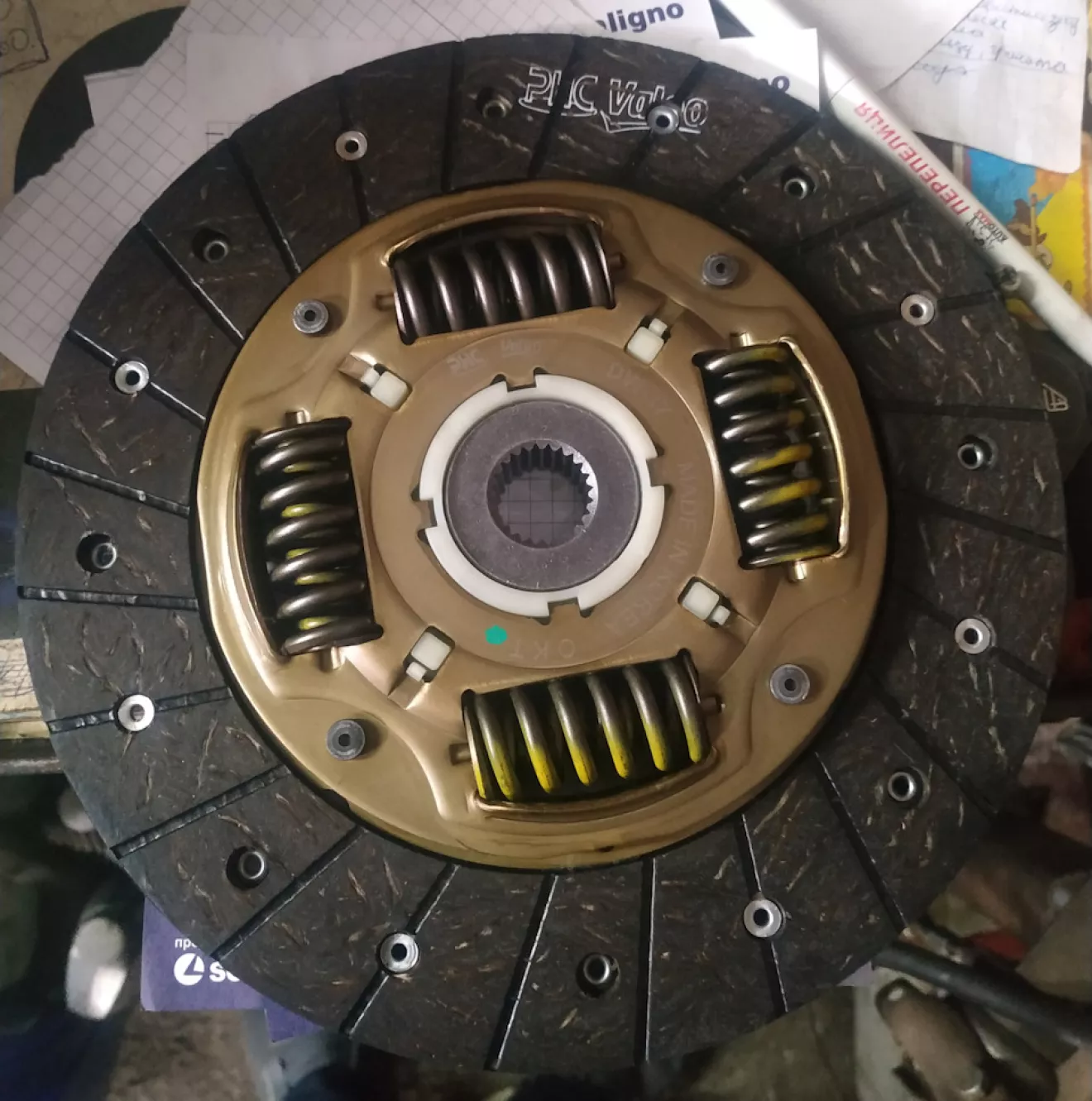 За одно и заменили диск сцепления. Корзина в отличном состоянии, диск изношен на половину, еще бы походил, но раз уж сняли коробку, то решили заменить!