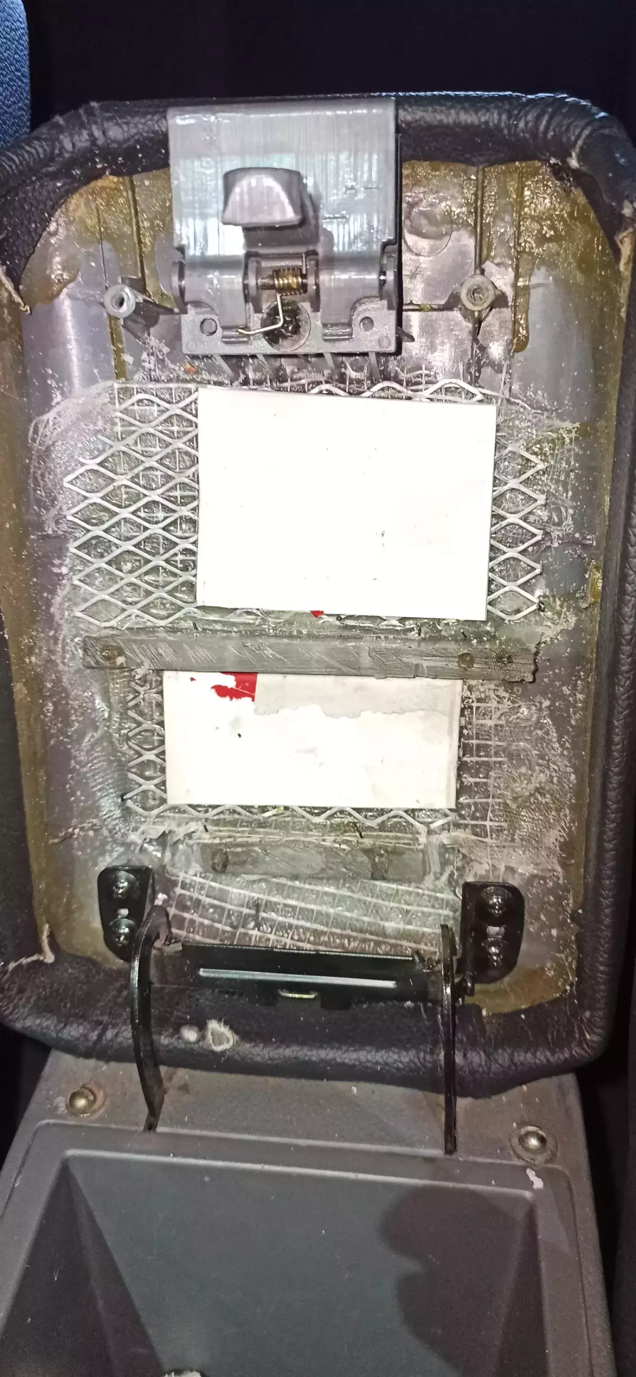 З підлокітником : замок замовив теж на Промі, але була продавлена площина, так як салон був перешит то і підлокітник був в цьому матеріалі, тому відновлюємо рідний. Фото не збереглись, але щось є. Кронштейни для кріплення були поламані, тому вклеюю нові, а площину паяю, та усилюю епоксидним клеєм з бинтом, та металевою сіткою. Збираю і підлокітник в порядку.