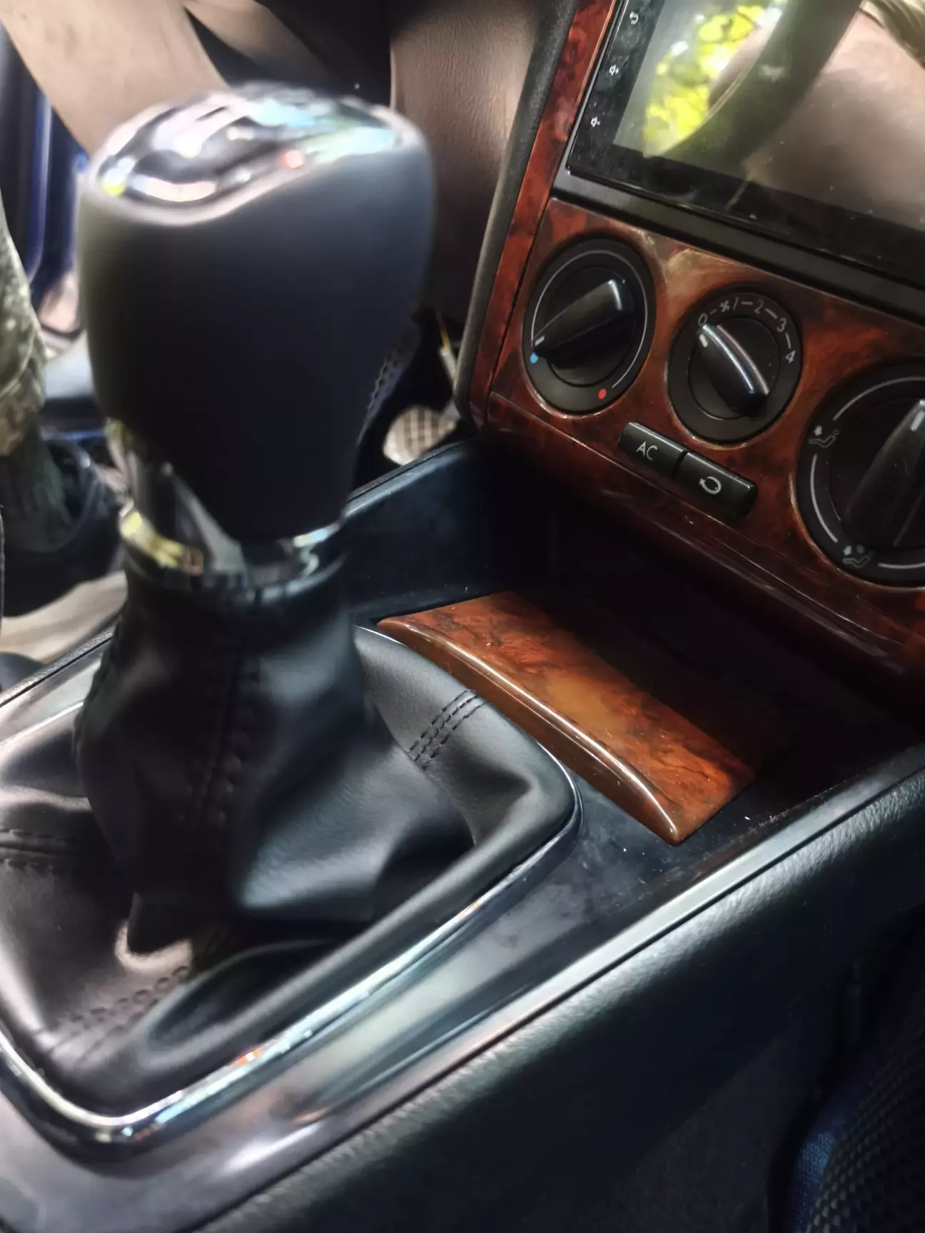 В заначке у меня была ориг ручка с кожаным чехлом, но купил я ее на угад и не угадал диаметр штока. Поэтому, к сожалению, установить ее не получилось, а жаль. Ведь синяя строчка гармонировала бы с цветом кузова и моими Ева ковриками, у которых синие канты...