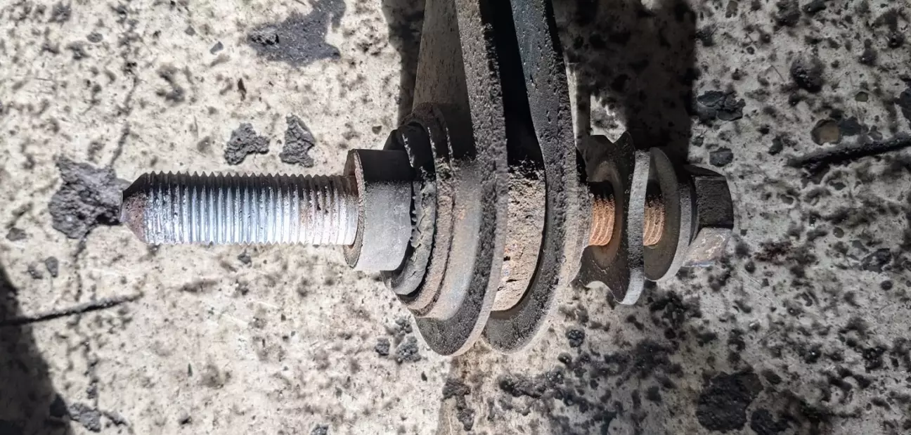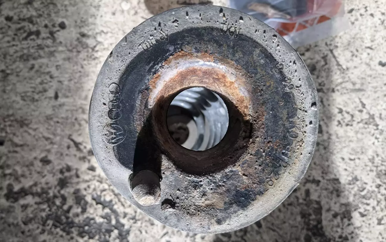 Лівий ледве відкрутили. Довжелезний важіль не взяв, молоток не взяв, прийшлося нагрівати + молоток, тоді пішов. Правий пішов легко.