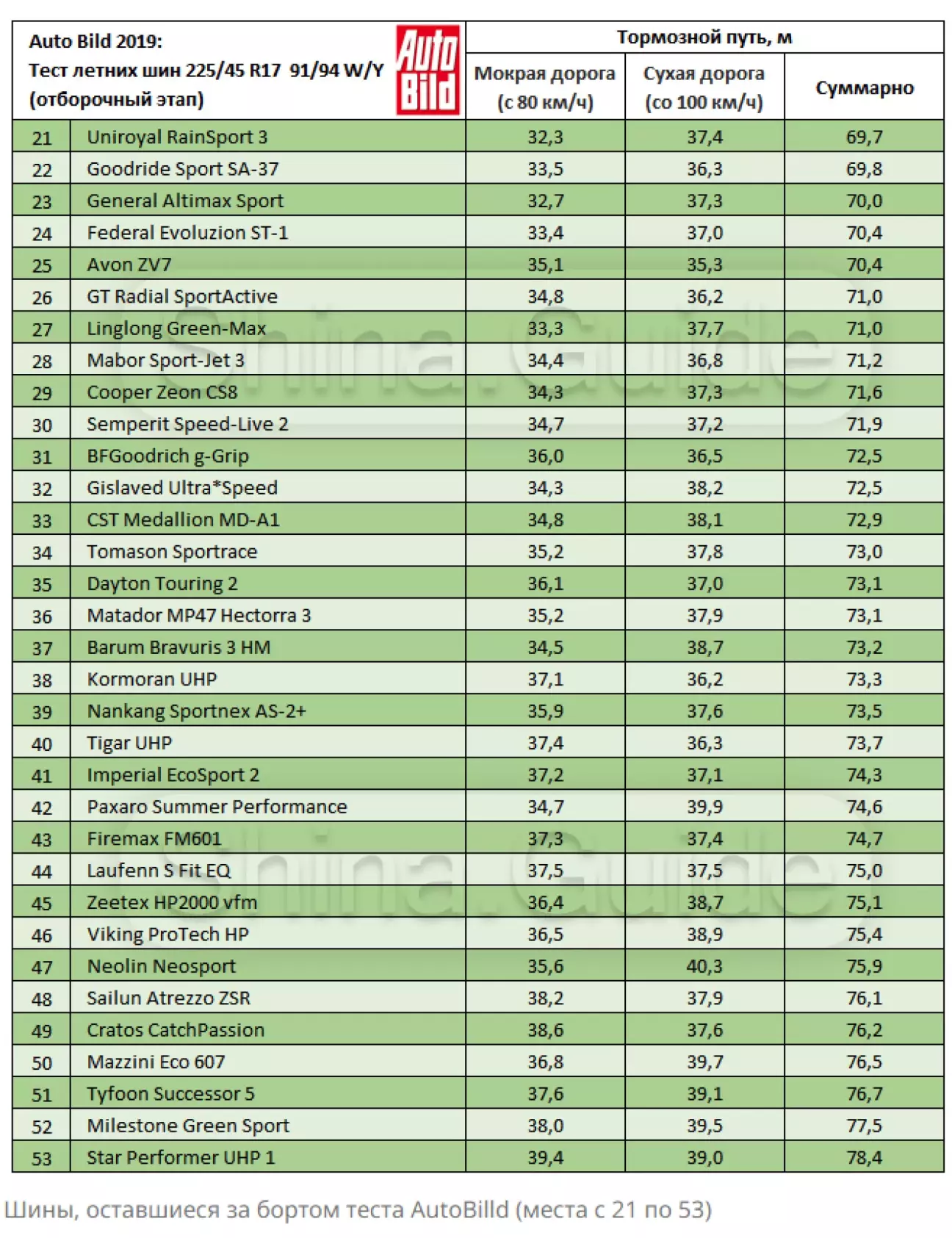 Ось лінк (німецька версія) Карти перетасовані - спортивні літні шини в порівнянні.