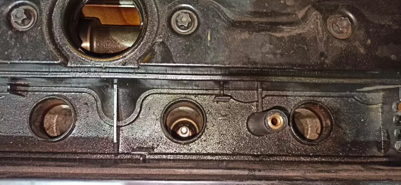 При відкручуванні побачив мастило в свічних колодцях. Знімаю к.к., чищу її та посадочне місце. Поки крутився в моторному відсіку побачив що права опора просіла, налаштовуюся на покупку нової оригінальної, консультувався яку краще поставити з Юрієм. Но у знайомого залишилась опора ТМ РН. Ставлю її, після встановлення мені здавалось що від неї йшов резиновий "піск" при їзді по горбилям, зараз наче нормально. Вібрація в салоні на хх пропала.