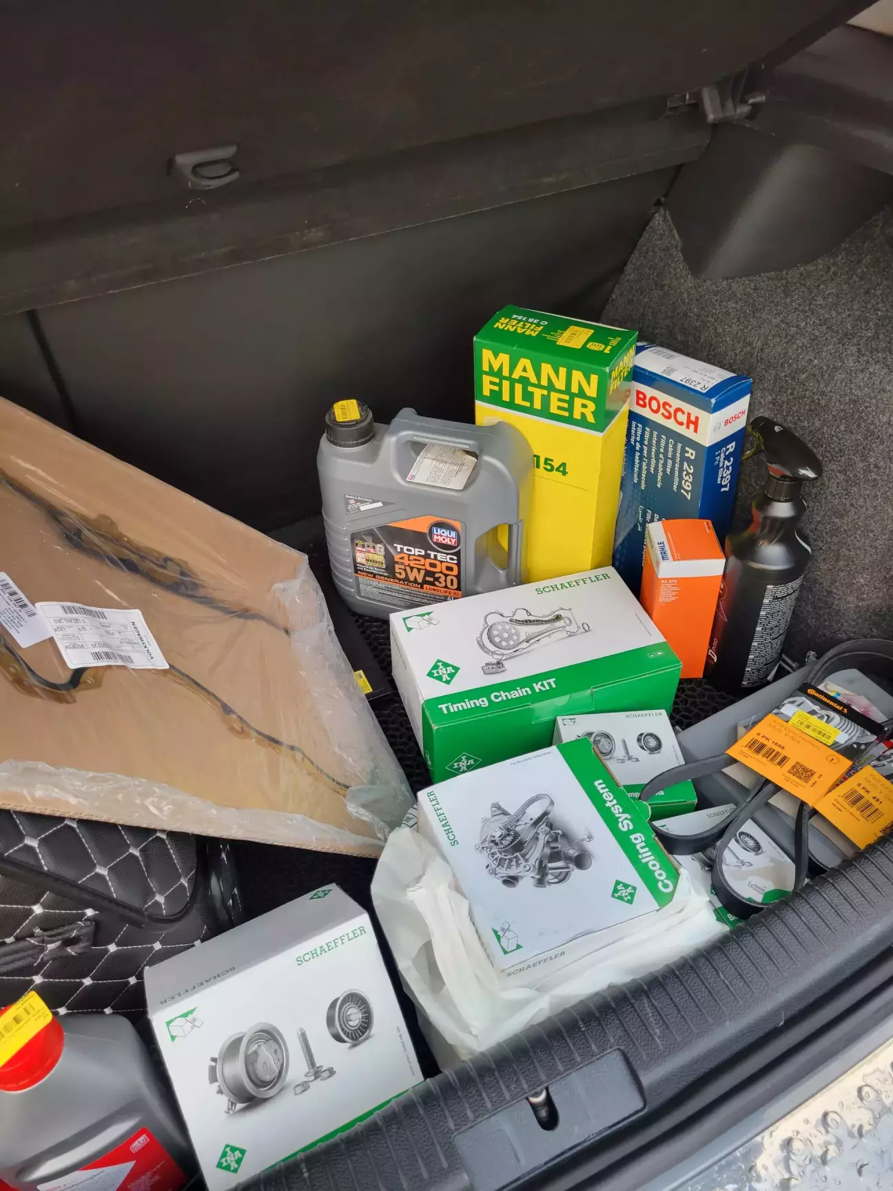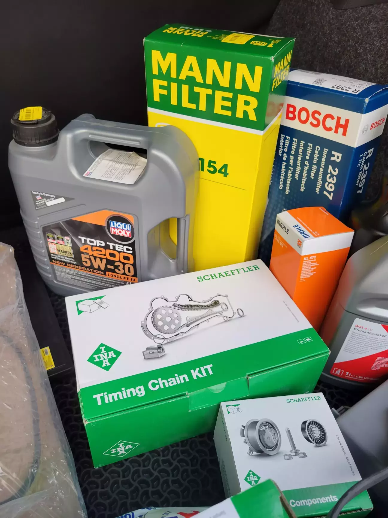 Коли більша частина запчастин прийшла, записався на СТО. Приїхав на заміну ланцюга ГРМ, всіх рідин та фільтрів (олива в двигун/МКПП, гальмівна рідина та антифриз), а також приводних ременів та роликів. Завдяки цьому (що завчасно придбав всі деталі) та приїхав з чітким ТЗ (технічним завданням), хлопці впорались швидко, як для такого обсягу робіт. В п'ятницю ввечері (~ о 17:00) залишив авто, вже в неділю о 16:00 забрав.