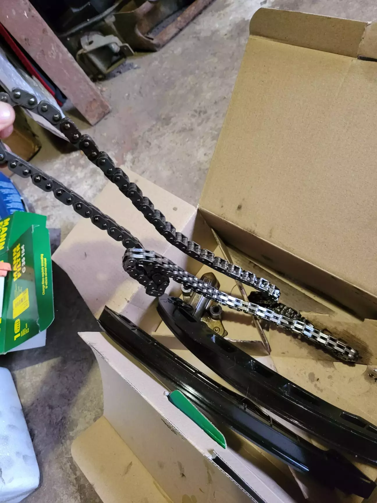 - Комплект ГРМ: ланцюг, натягувач та два заспокоювача. Обрав комплект від виробника INA. Раніше це був гарний аналог оригіналу, а наразі наче ця компанія має три заводи. На СТО, до речі, поділилися власним досвідом: мовляв, більшість запчастин від них йде саме з заводу в Китаї, тому якість значно впала, порівняно з деталями що були вироблені в Німеччині. На жаль, я спочатку теж не глянув на виробника, і в мене теж виявилось китайське виробництво.