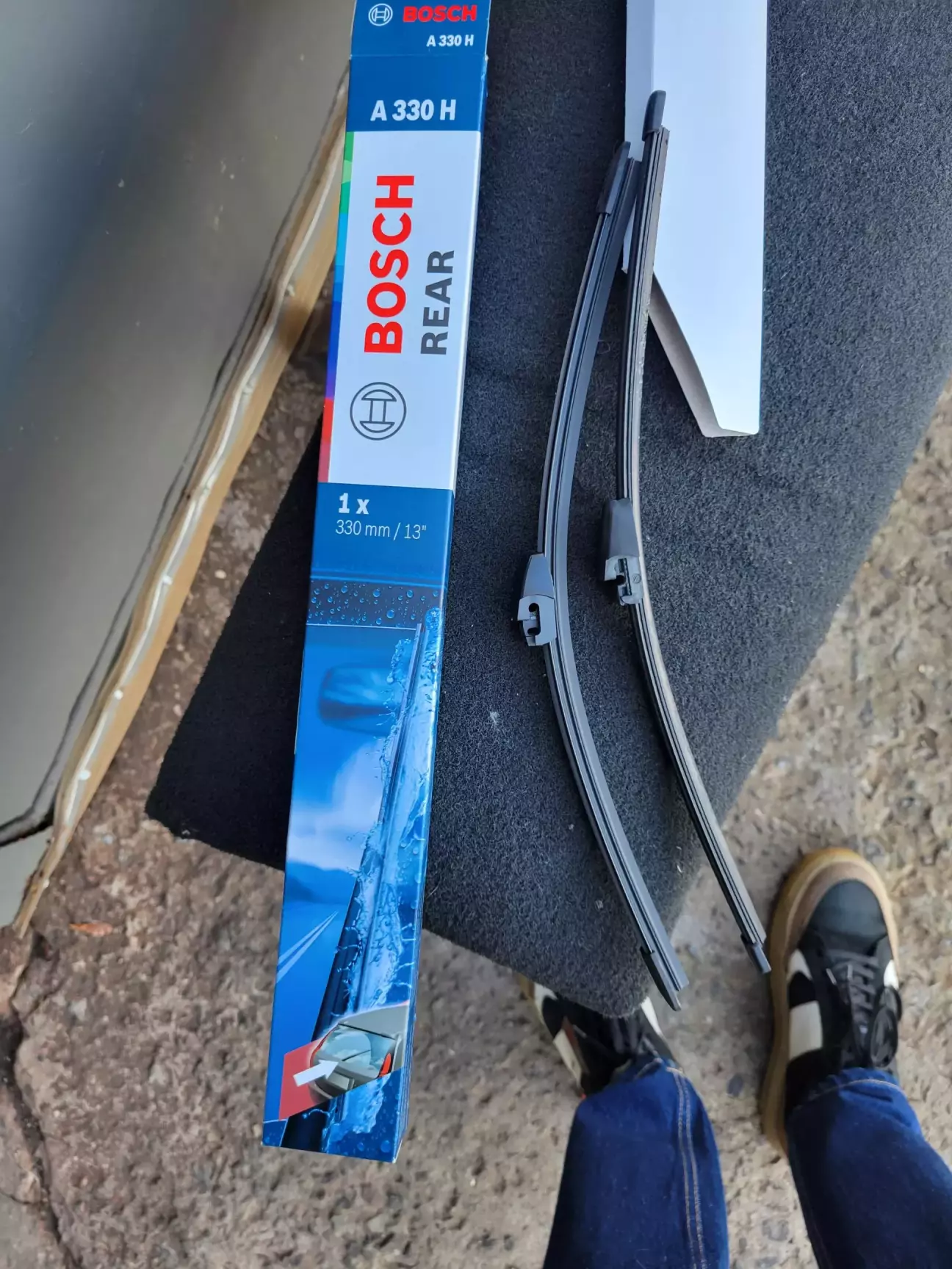 Також встановив задній двірник Bosh Rear 330mm безкаркасний. Зі старим немає навіть сенсу порівнювати — працює тихенько та м'яко, хоч на самому склі купа водного каменю.