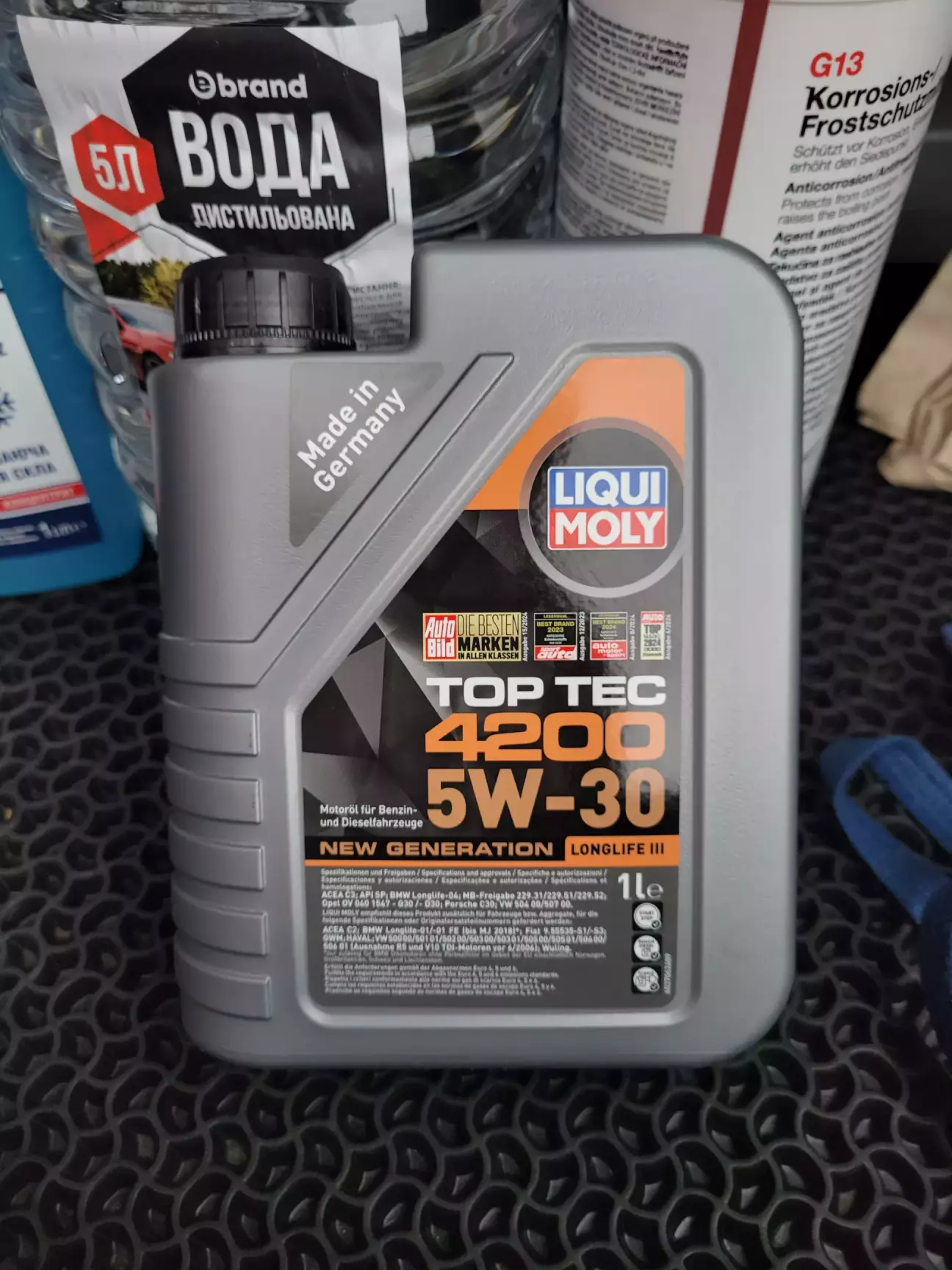 - Моторна олива Liqui Molly Top-Tec 4200 5W-30 504/507 допуск (не зраджую виробнику ще з минулого авто, але готовий спробувати щось інше у майбутньому).