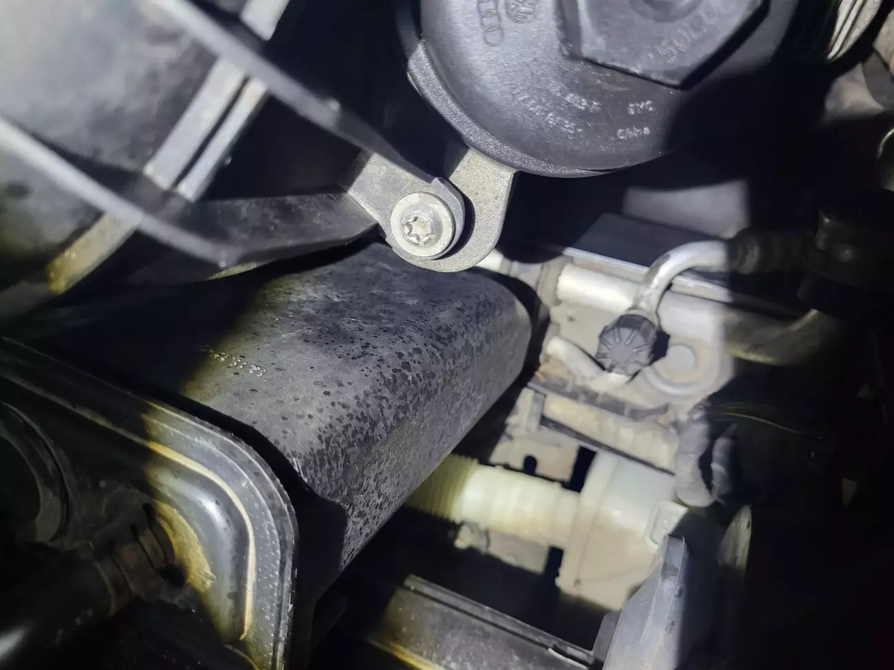 - Ще перед покупкою бачив, що потіє патрубок інтеркулера знизу. На СТО тимчасово відмили його від оливи, та сказали певний час послідкувати за динамікою підтікання. Далі будемо розбиратися, звідки там саме олива: не тримає тиск клапан PCV, турбіна виганяє оливу чи є інша причина.