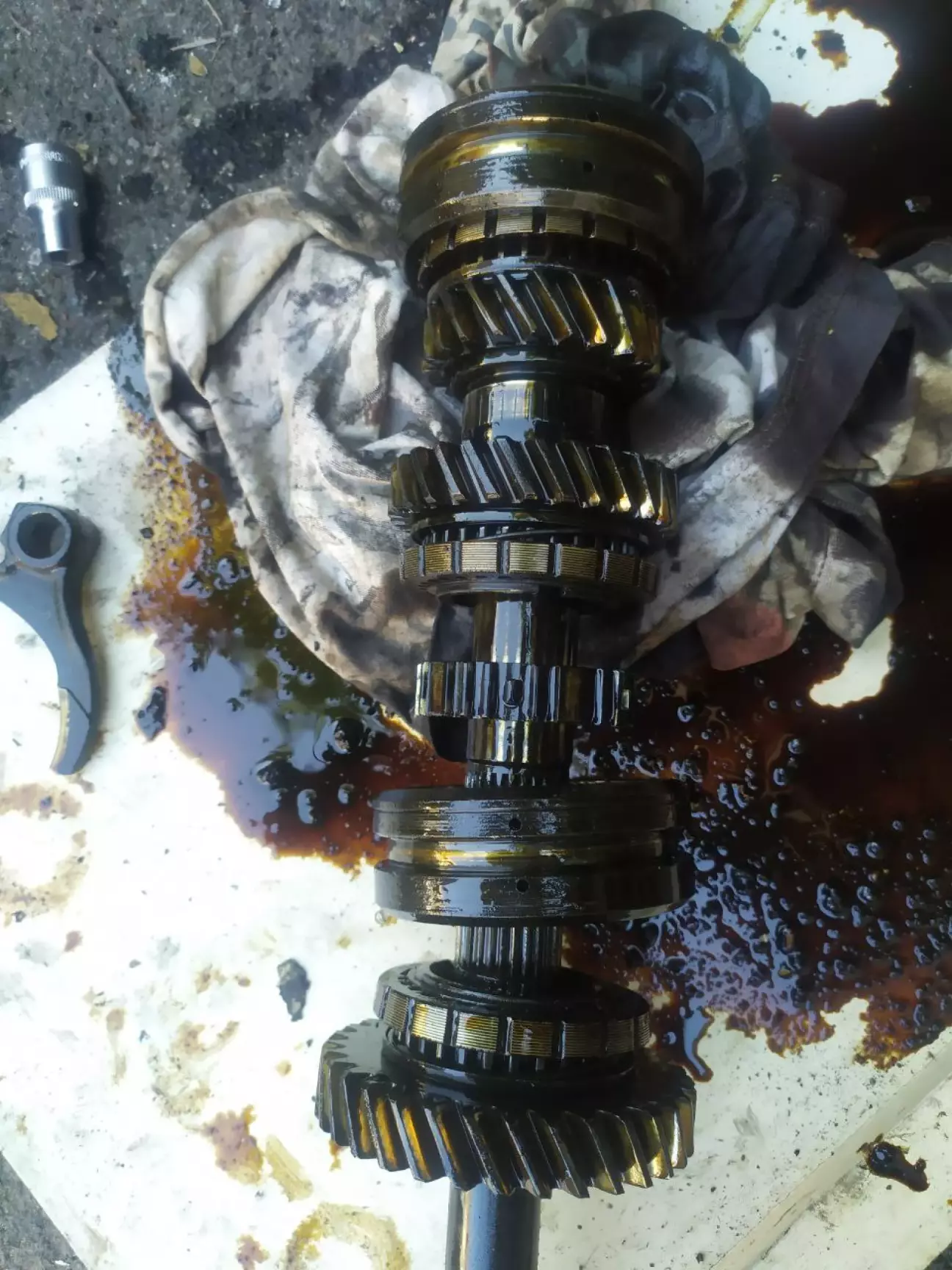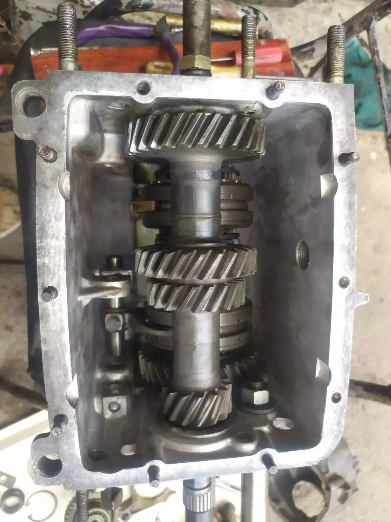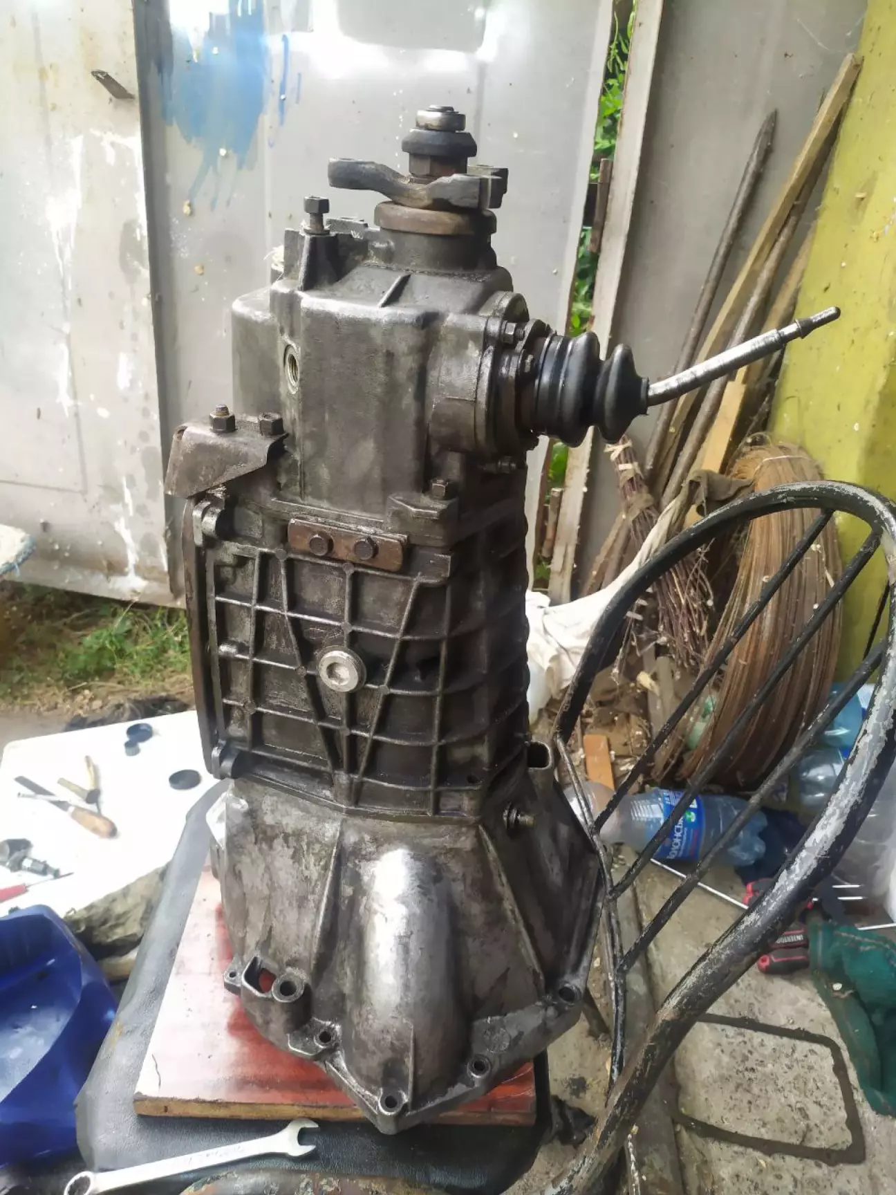 Був 2022 рік. Знайомий запропонува 5 ступку під ремон, на той час я за неї віддав 2000 грн разом з карданом. Він розбирав свою 2104. Машина була або кінец 90-х, чи прчаток 2000-х. Під час розборки коробки було виявлено що лопнув болт який тримав щестерню 5 передачи. Рішив розібрати повністью коробку и подивитися синхрони и шестерні других передач. Здаеться я поміняв тоді пару синхронів 1 муфту і вилочки вибору передач, також був зломаний датчик скорости. За тиждень не поспішаючи зробив коробку. Все тоді збирав на прокладки і це був великий мінус, згодом почав запотівати піддон коробки, але все працюе добре і перемикаеться. Спідометр почав показувати на 20 км/год більше. Але відверто кажучи великої різниці я не відчув, більше 100-110 км/год я не їджю бо не бачу смислу, це машина не для скорості. Так трохи стало тихіше. Ще замінив сам диск счеплення, старий був ще доброму стані, але подумав відразу замінити і його. Доречі на машині стояла 4 ступка з FIAT 124, і крепежние болти такі як на генераторі ще стоят також з FIATA.