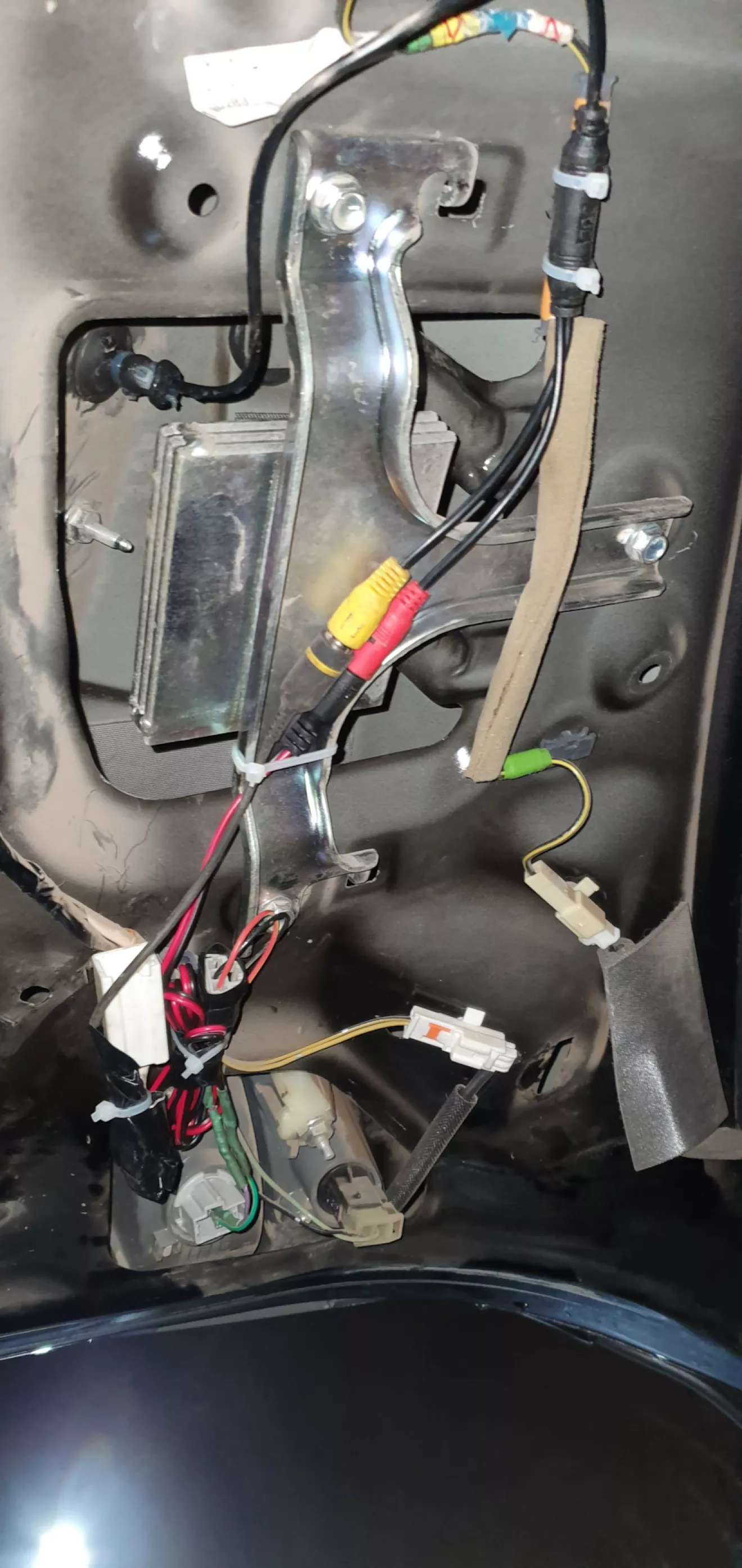 Т.к. лежала камера заднего вида универсальная и в родной камере проводка струхла и разъем так же струх, было принято решение в корпус родной поставить универсальную и подключить к фонарю заднего хода.