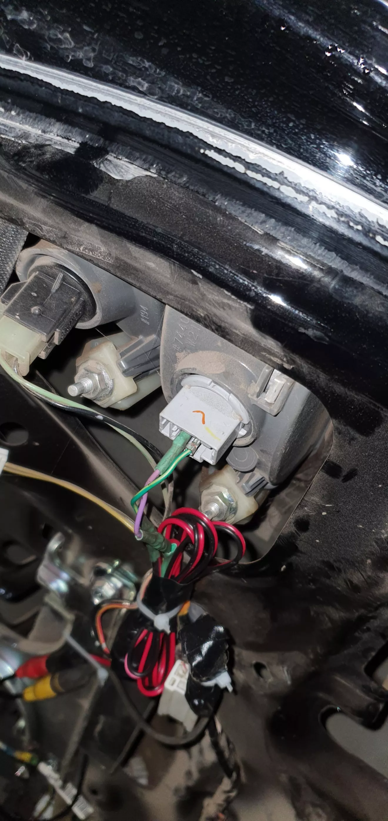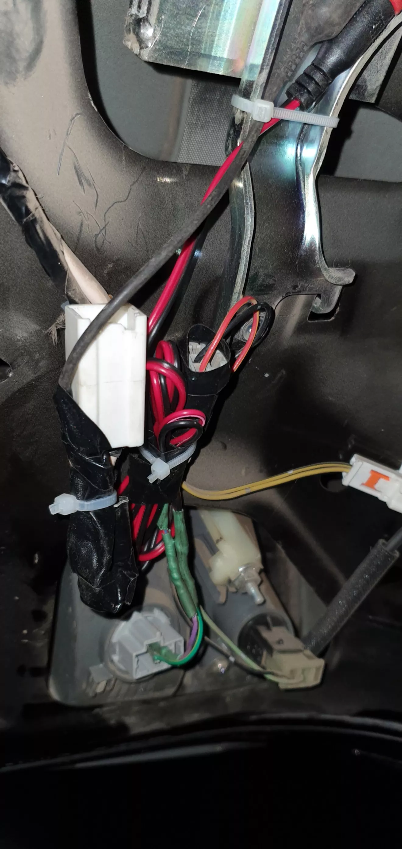 На подалючение видео сигнала впаял "тюльпан" чтобы камеру сконектить с проводкой авто. Заизолировал и защитив от влаги не срезая разъемы их закрепил стяжками.