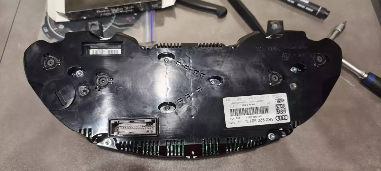і вже через 3 дні шкали були в мене. Щоб зняти приборку потрібно опустити руль вниз та повністю на себе, зняти захисний верхній щиток, відкрутити два болти на 8, потягнути її на себе та від'єднати штекер. Потім коли приборка в руках відкручуємо саморізи 6 штук та від'єднуємо 4 застібки.